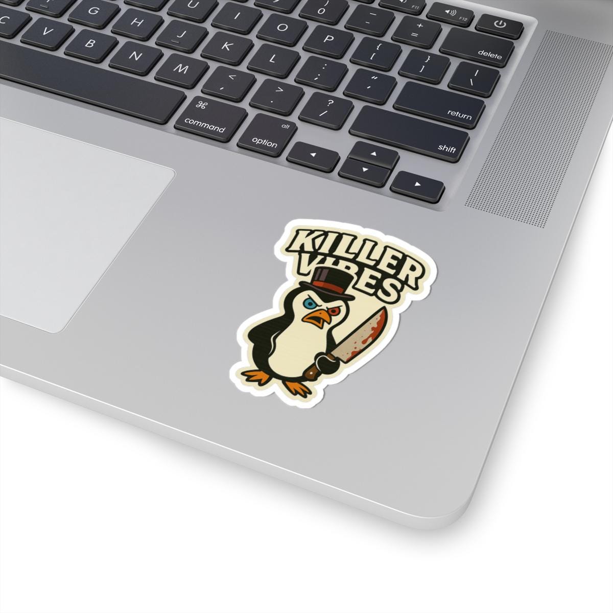 penguin sticker, killer vibes sticker, horror vinyl sticker, funny horror sticker, quirky laptop sticker, kiss cut sticker, custom vinyl sticker, spooky cute sticker, edgy sticker, gothic sticker, alternative sticker, journal sticker, horror gift idea, cute creepy sticker, weirdcore decor, alt aesthetic sticker, vinyl penguin sticker, cool stickers for adults, horror themed sticker, sadistic penguin studios