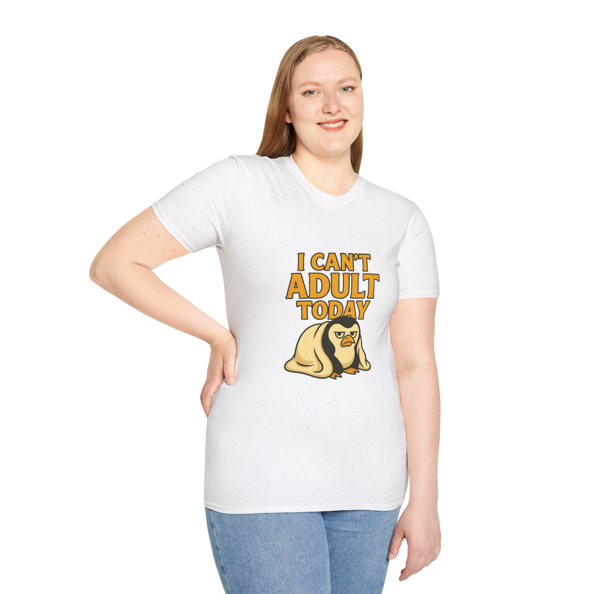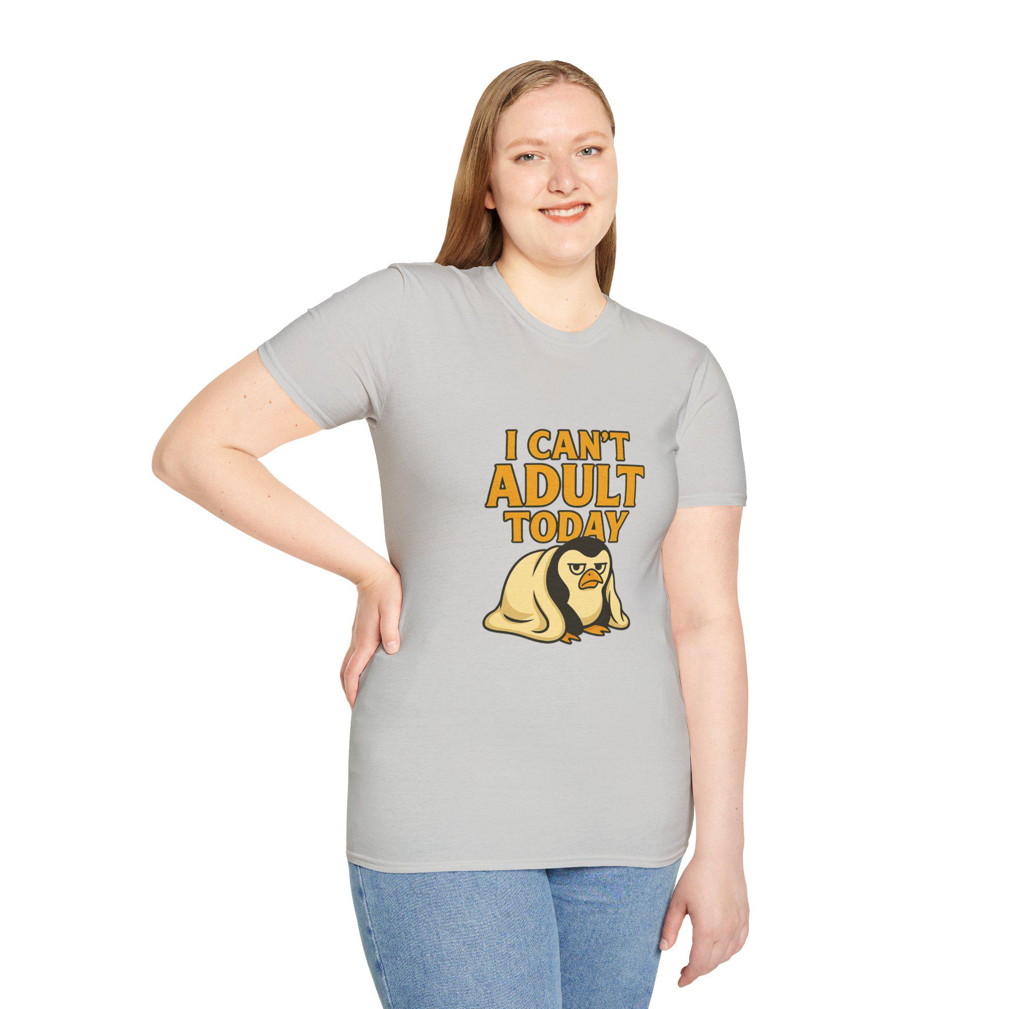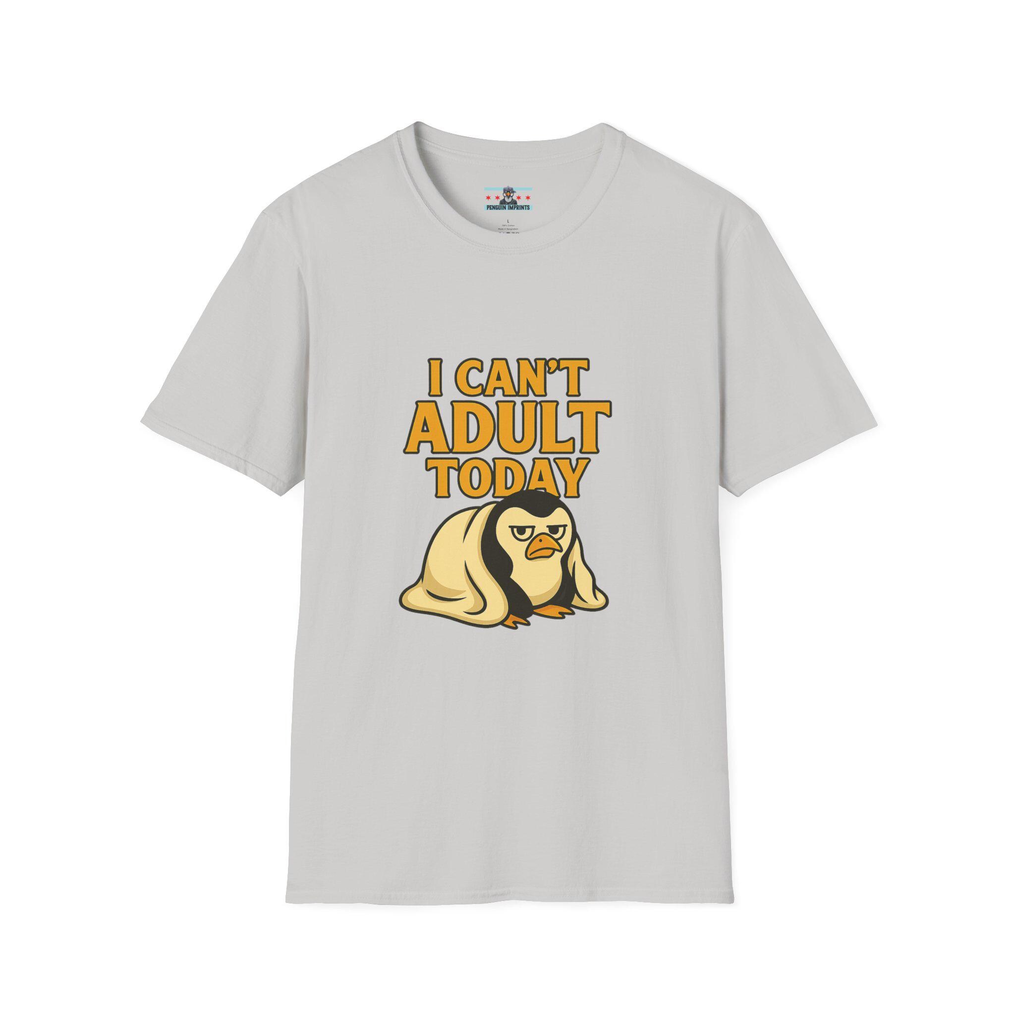 Add a touch of humor to your lazy days with this 'I Can’t Adult Today' Penguin T-Shirt. This unisex graphic tee is perfect for those who appreciate a good laugh and a comfortable fit. It's ideal for adults looking to unwind and relax in style. This humorous shirt is relevant for casual days, weekends, birthdays, and any laid-back occasion.