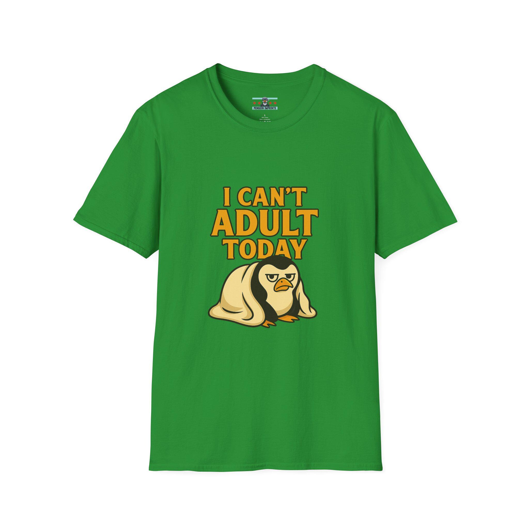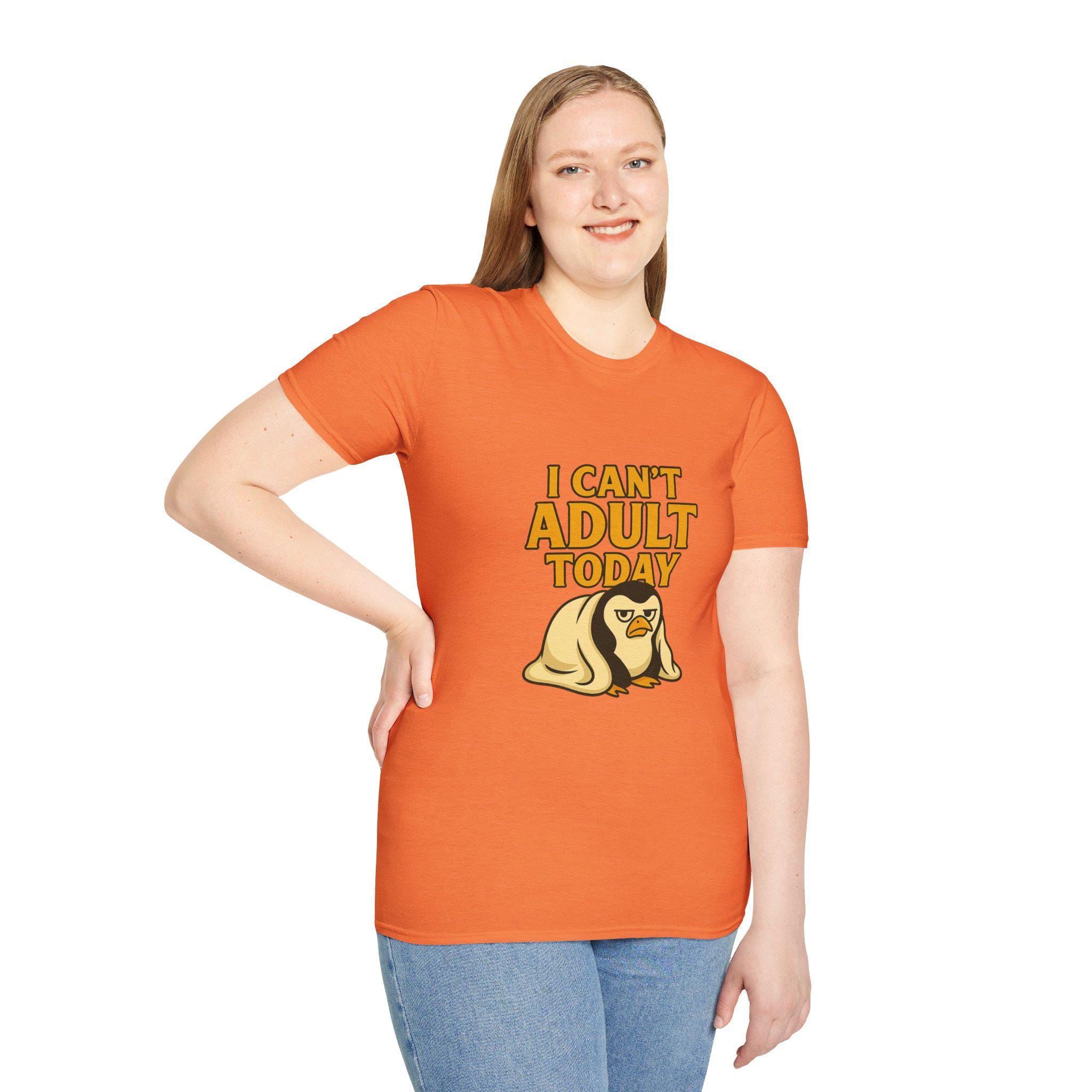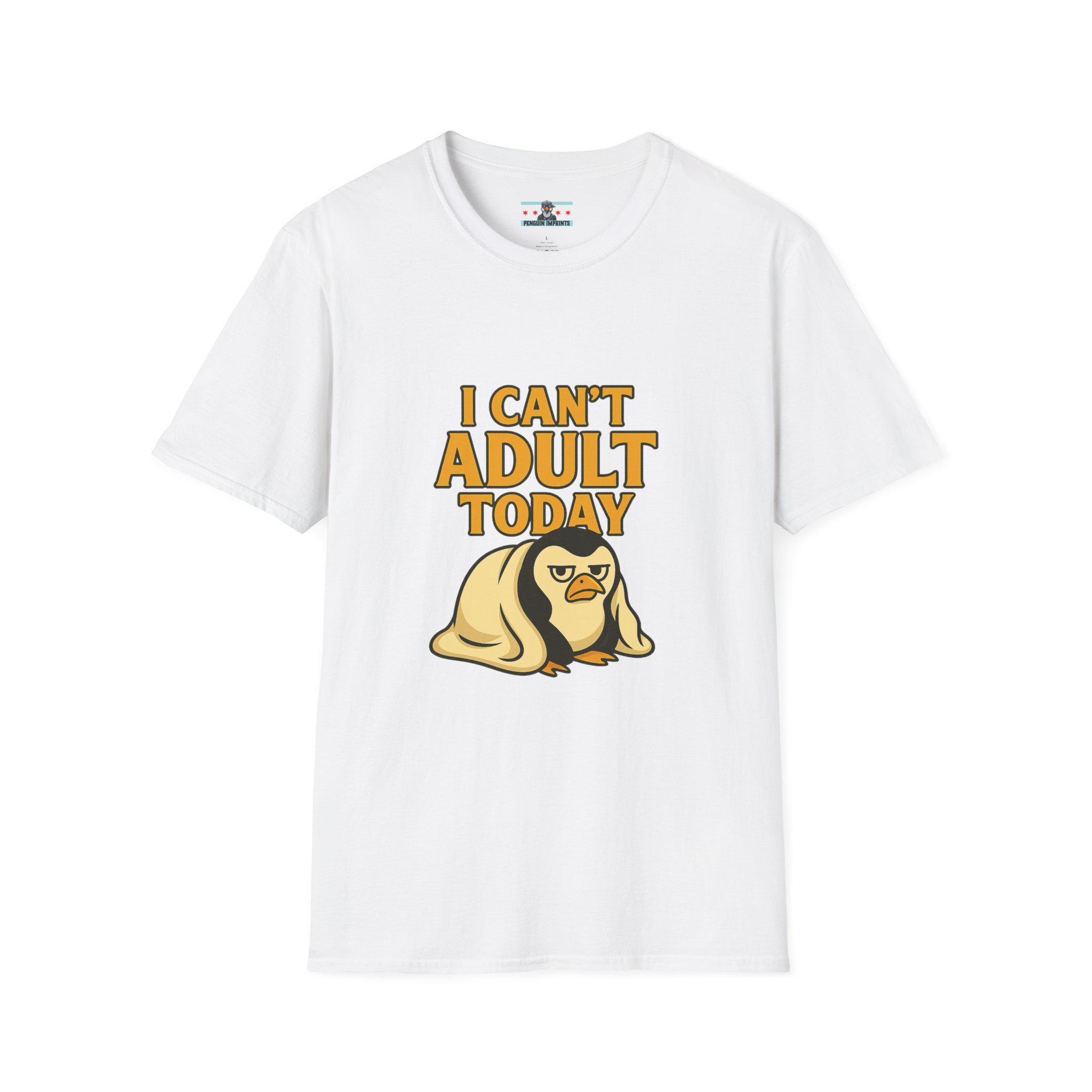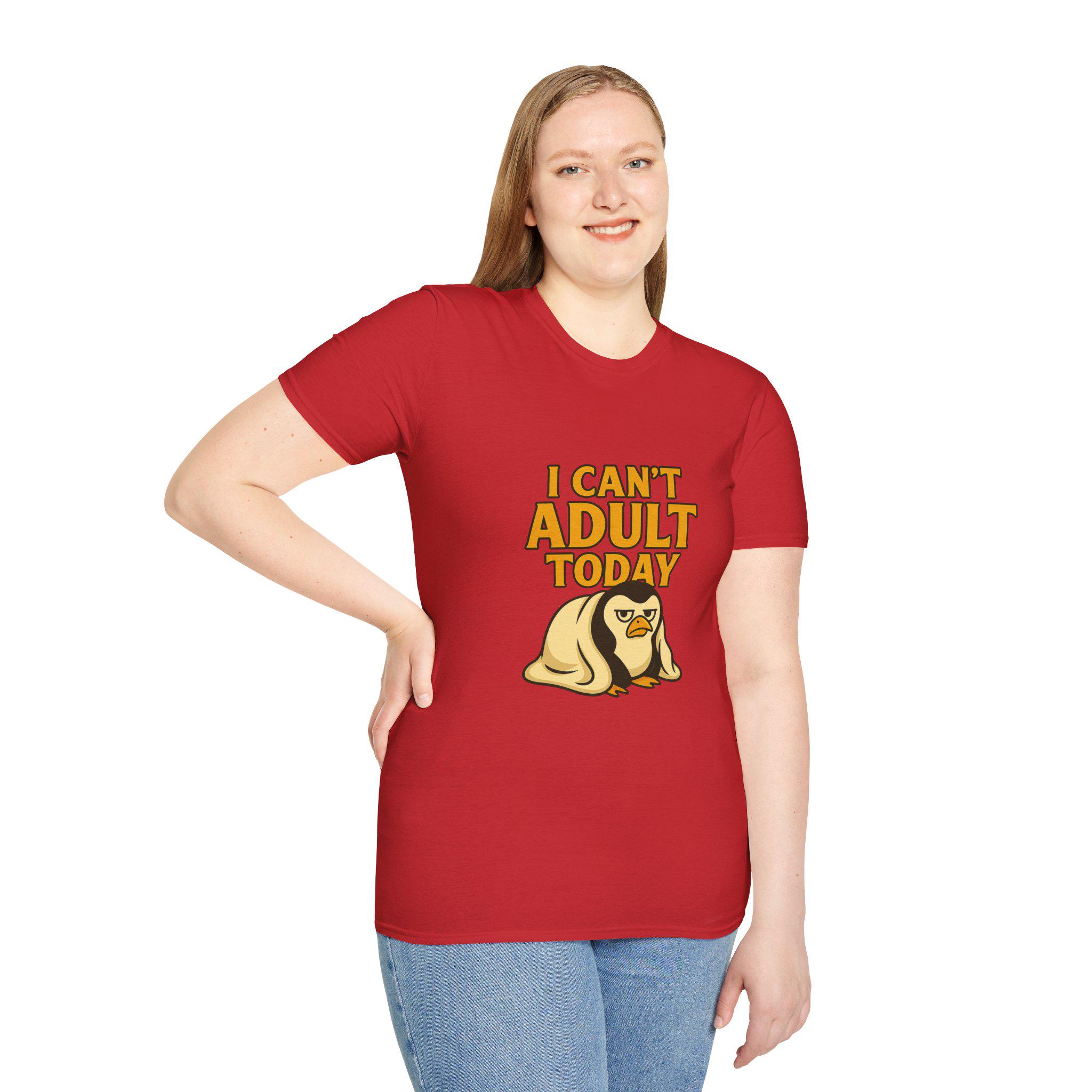 Add a touch of humor to your lazy days with this 'I Can’t Adult Today' Penguin T-Shirt. This unisex graphic tee is perfect for those who appreciate a good laugh and a comfortable fit. It's ideal for adults looking to unwind and relax in style. This humorous shirt is relevant for casual days, weekends, birthdays, and any laid-back occasion.
