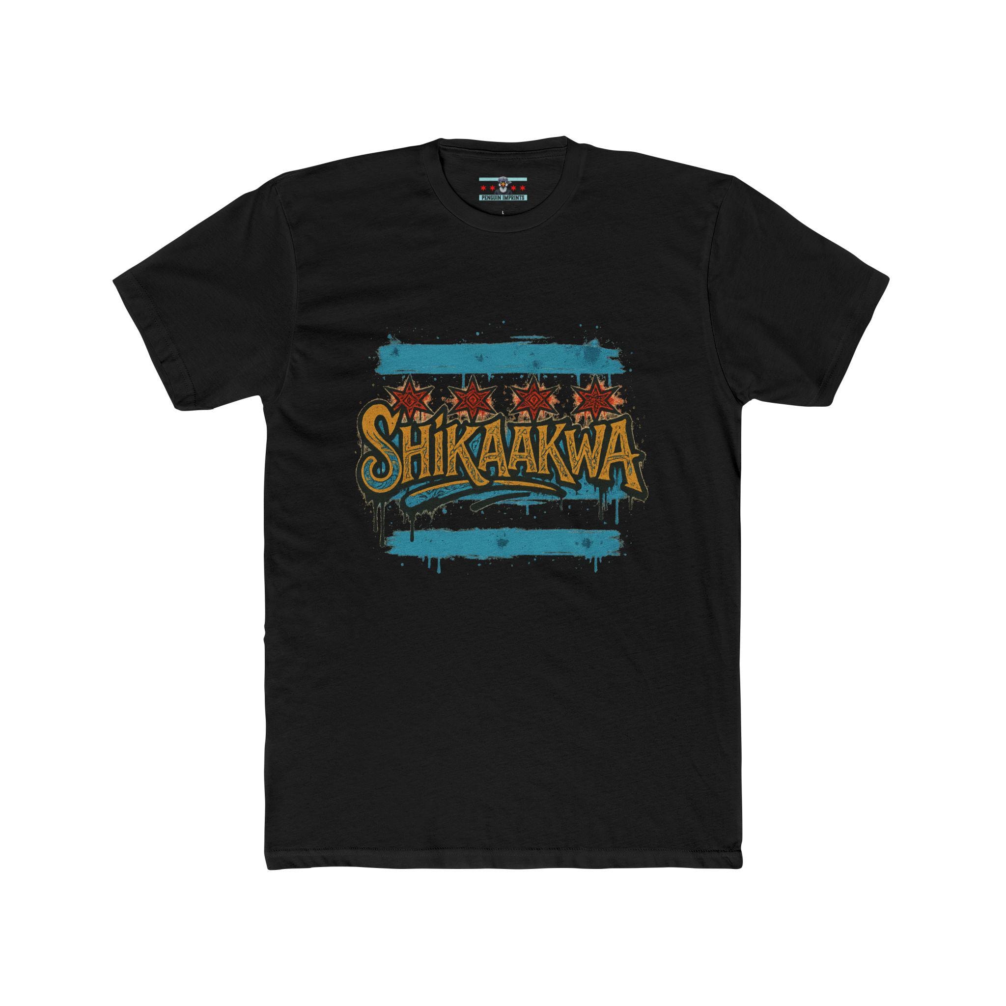 Chicago graffiti t-shirt, Shikaakwa Chicago shirt, Indigenous inspired Chicago tee, Chicago streetwear unisex shirt, Urban graffiti flag t-shirt, Chicago city pride clothing, Native Chicago design shirt, Festival streetwear Chicago tee, Unisex cotton Chicago shirt, Chicago gift idea t-shirt, Algonquian inspired shirt, Chicago flag reimagined tee, Men's Chicago streetwear shirt, Women's Chicago graphic tee, Chicago heritage clothing, Chicago festival outfit shirt, Unique Chicago souvenir shirt, Graffiti art Chicago apparel, Shikaakwa Indigenous streetwear, Chicago fashion graphic tee