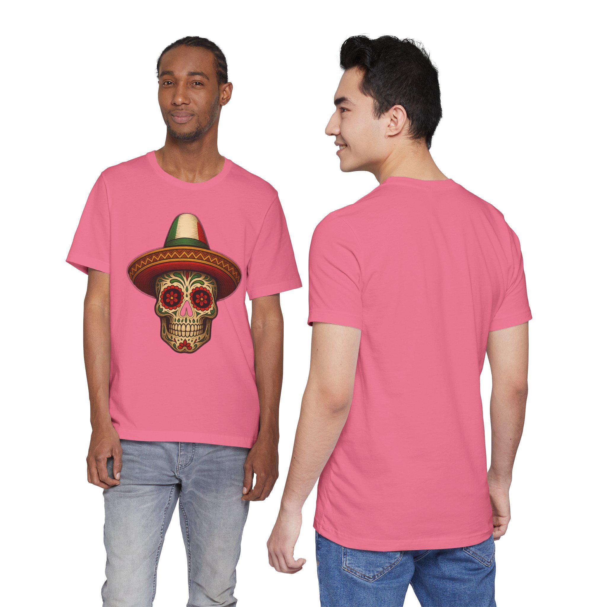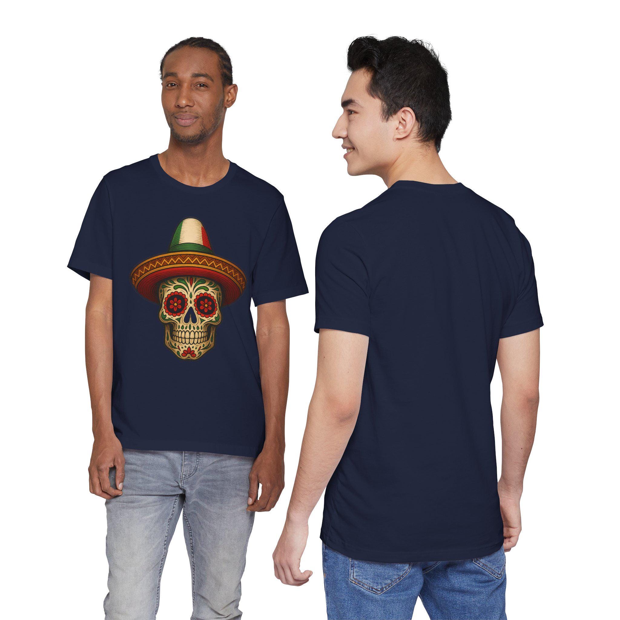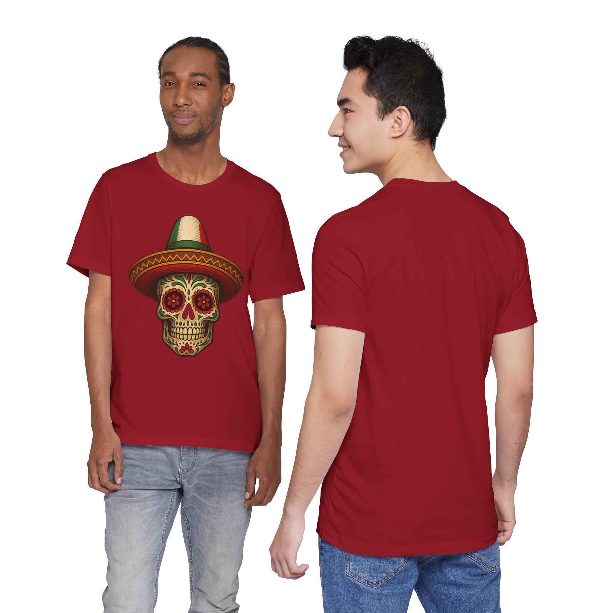Celebrate culture, heritage, and bold design with this unisex Mexican Sugar Skull T-Shirt, featuring a detailed Day of the Dead calavera topped with a festive sombrero. Perfect for Día de los Muertos, Cinco de Mayo, or anytime you want to show off your Mexican pride, this eye-catching tee blends vibrant colors with everyday comfort.