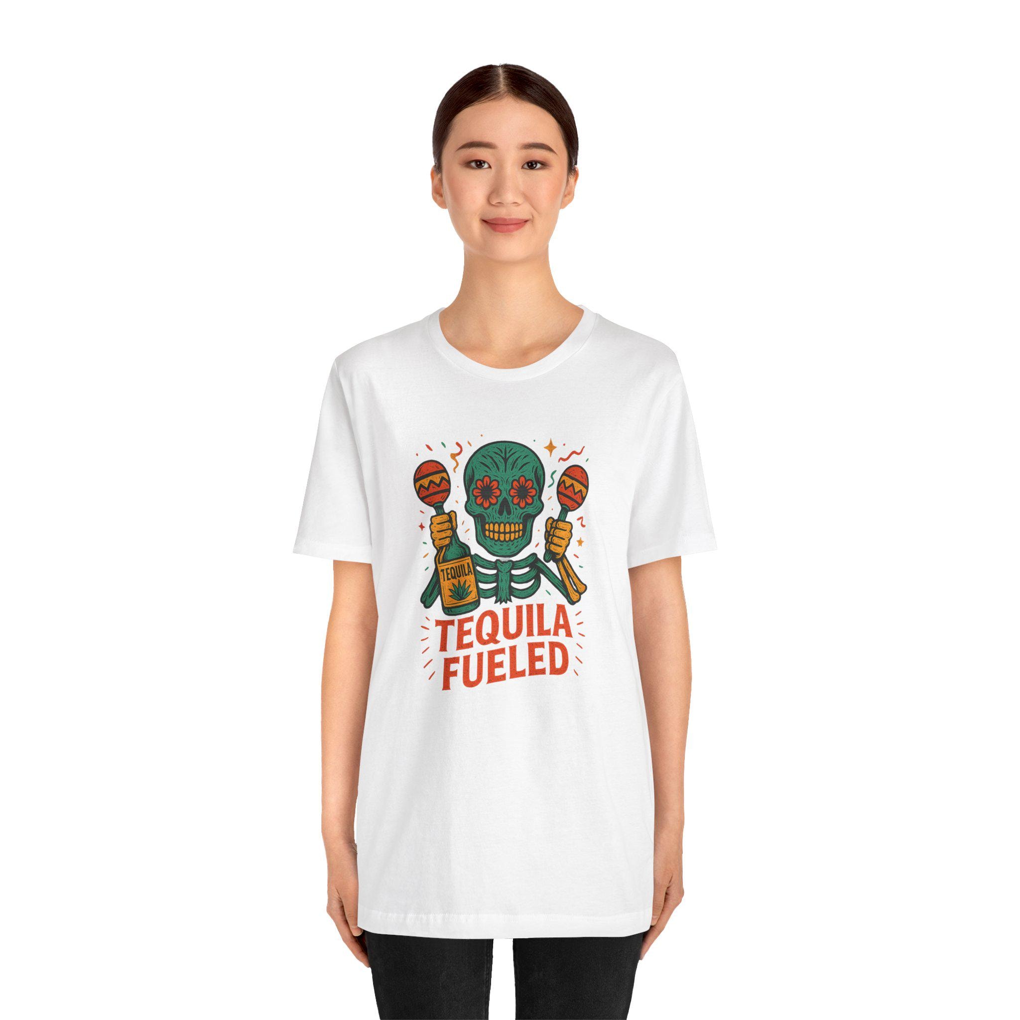 Celebrate every fiesta in style with our Tequila Fueled Unisex Jersey Short Sleeve Tee — a vibrant design bursting with life, laughter, and just the right amount of mischief! This shirt features a colorful skeleton holding a bottle of tequila and maracas, perfectly capturing the spirit of Día de los Muertos, Mexican heritage, or any wild night out.