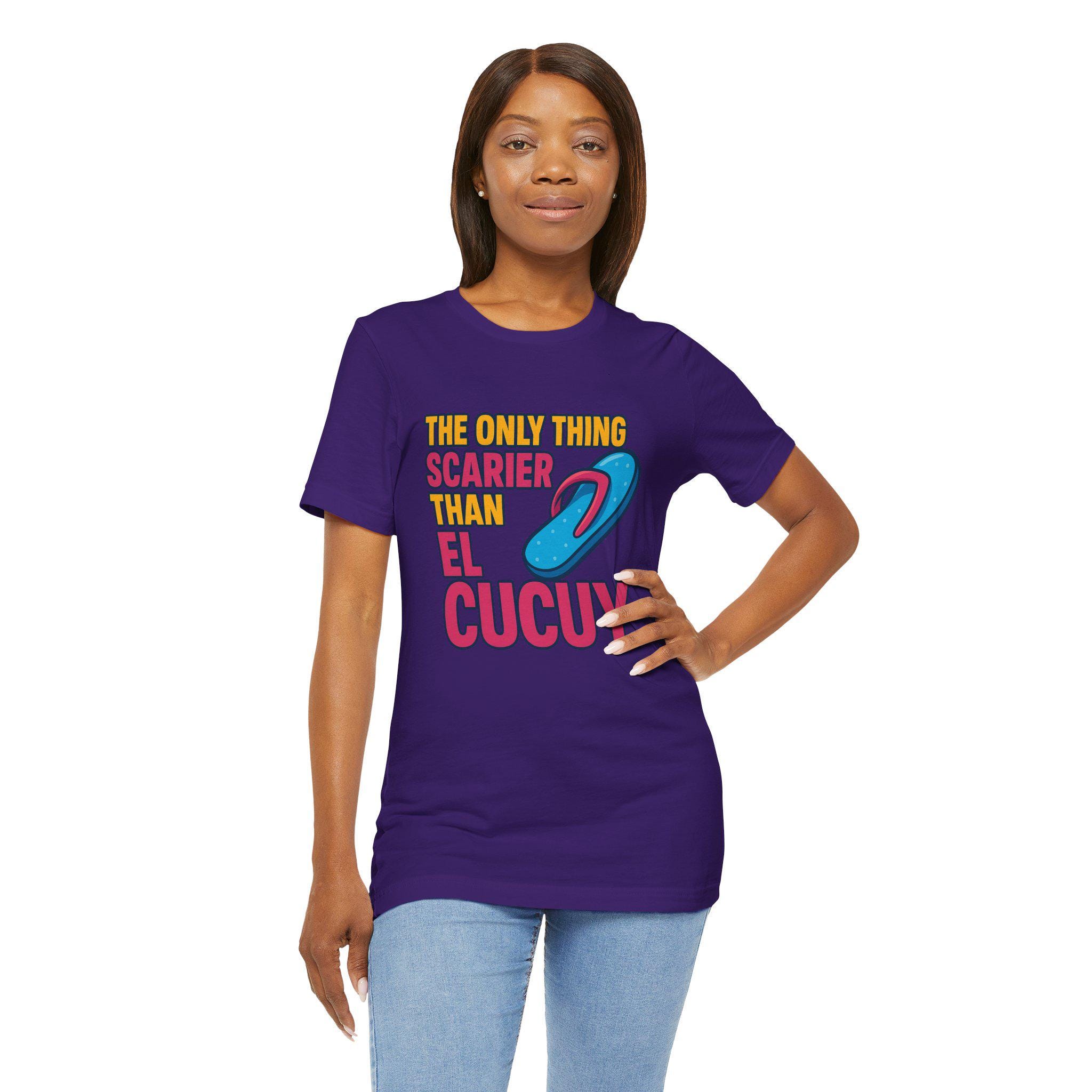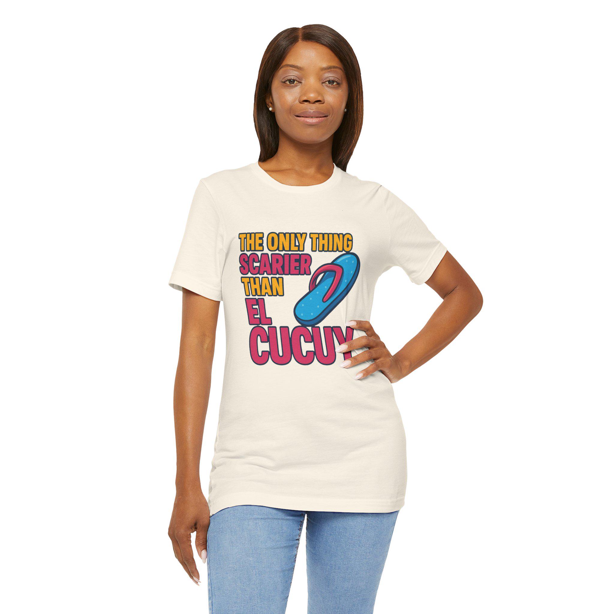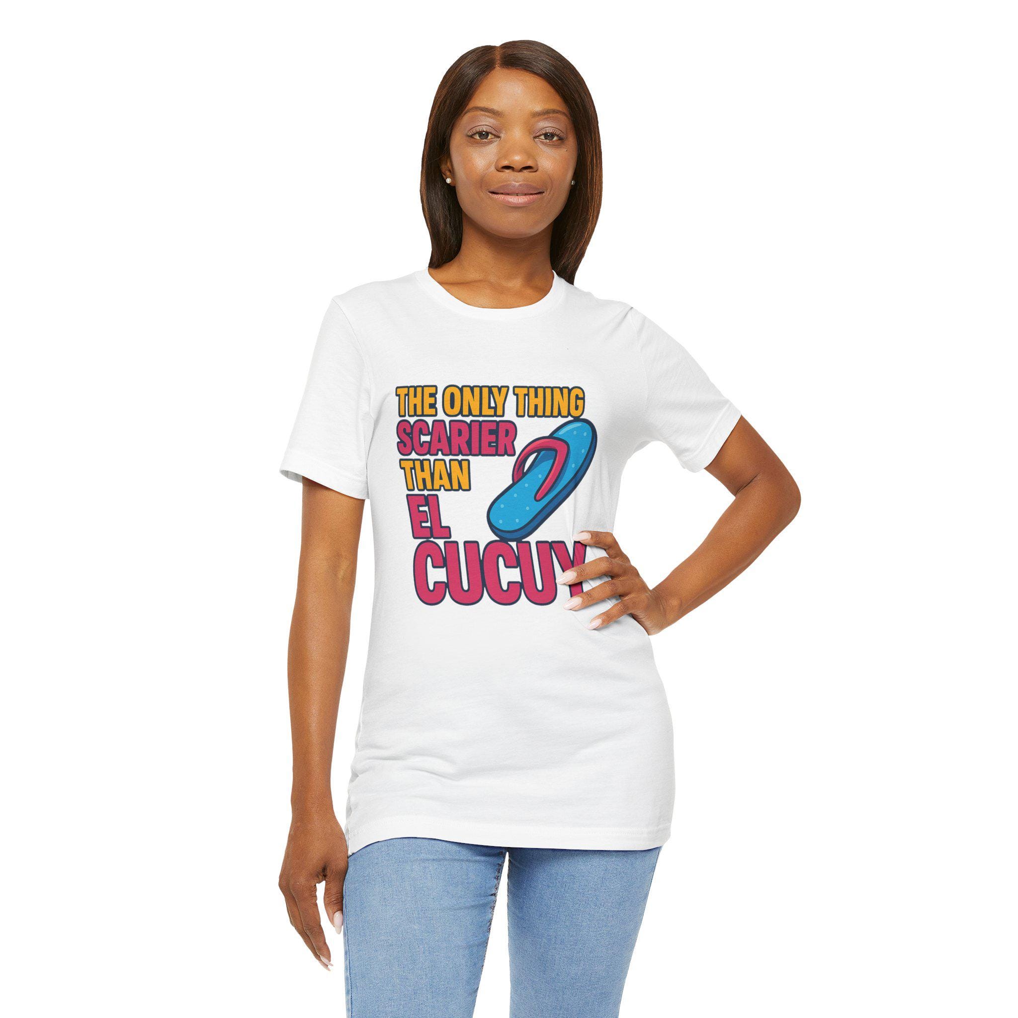 Embrace the ultimate mix of humor and culture with The Only Thing Scarier Than El Cucuy t-shirt — a hilarious nod to every childhood fear: La Chancla! 😱