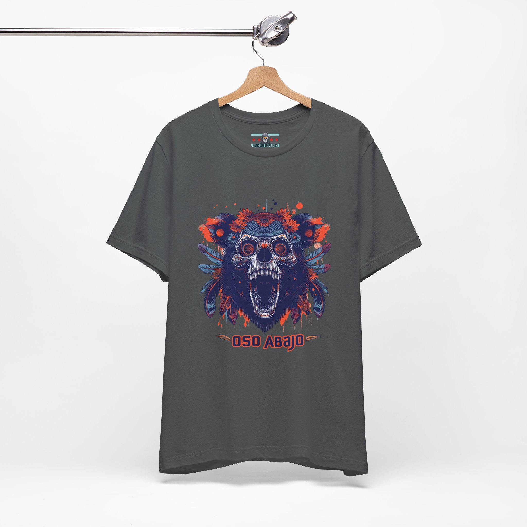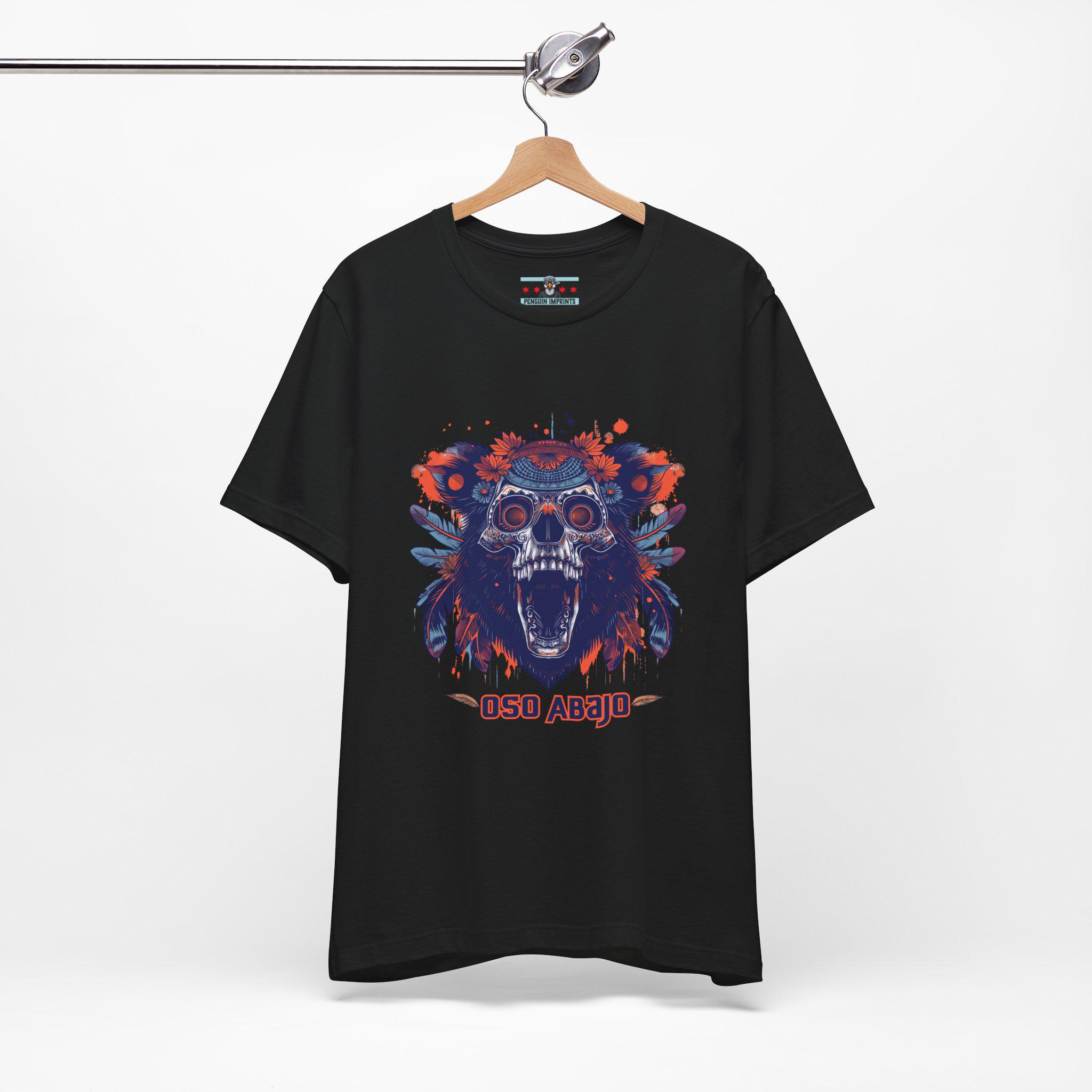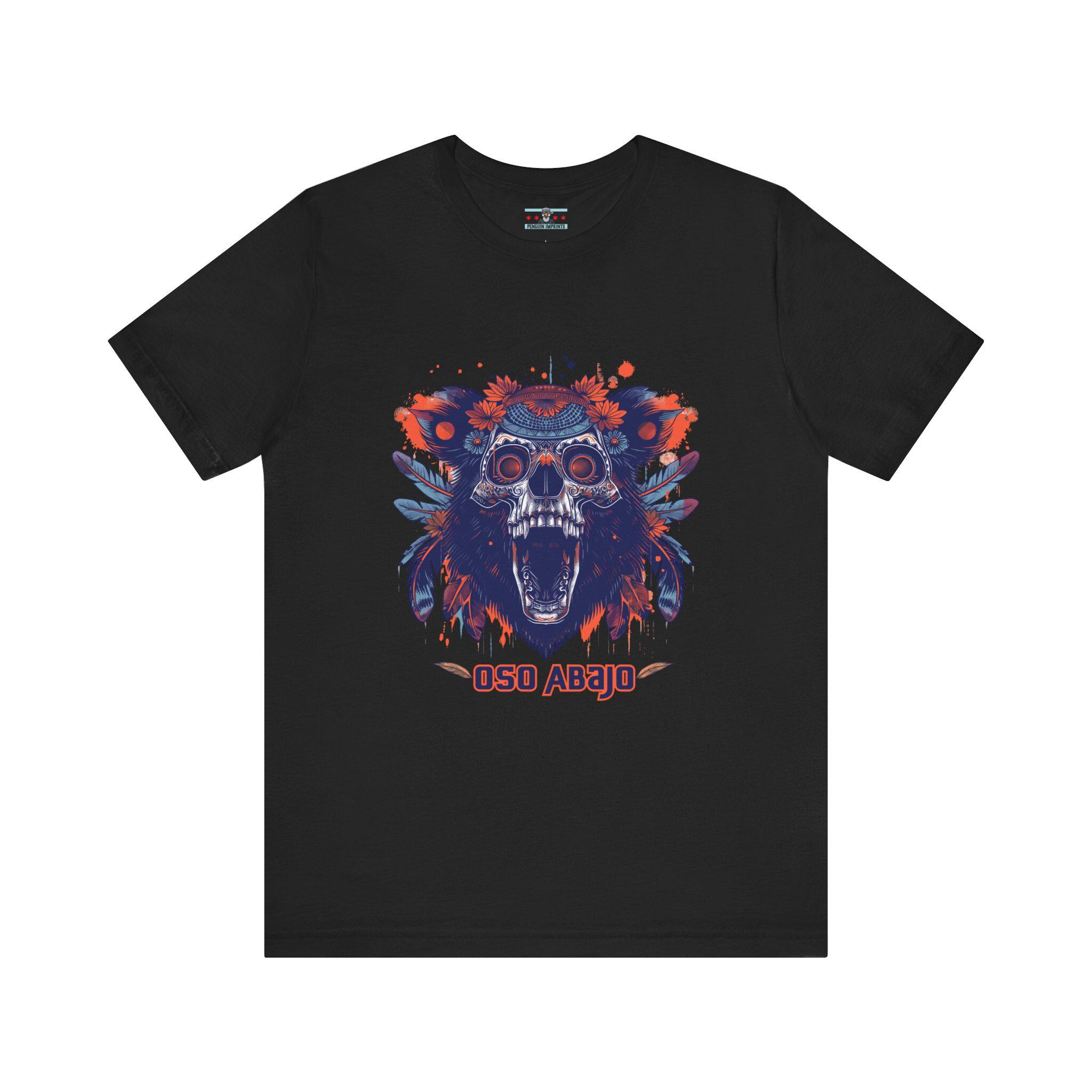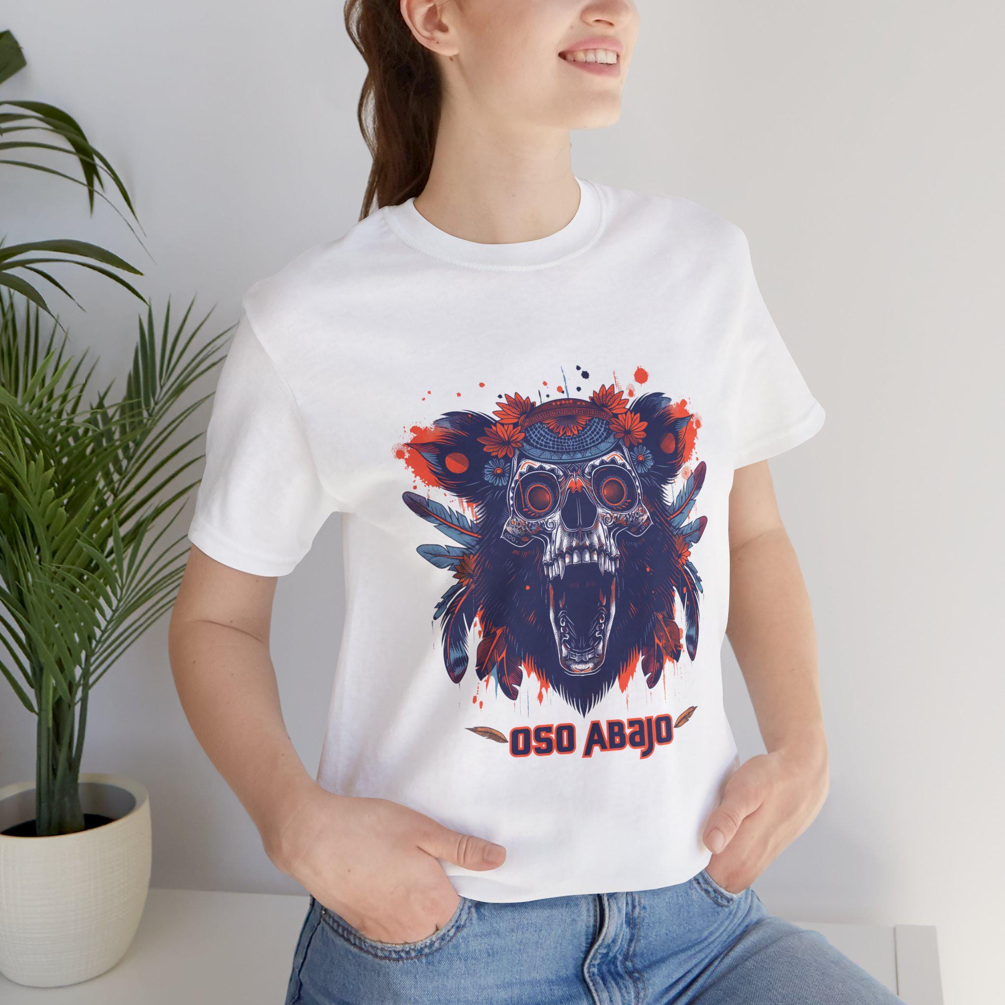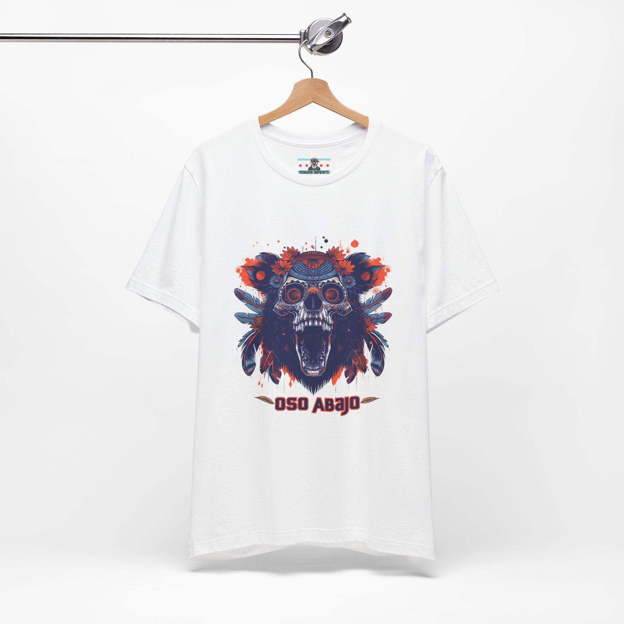Channel fierce folklore, fan pride, and street-style edge with this graphic T-shirt inspired by Día de los Muertos and Chicago football. The bold skull-faced bear design with tribal and feather accents exudes raw energy and cultural heritage. Made from lightweight, breathable cotton, this tee is perfect for repping your city, hitting a concert, or exploring after dark. It's relevant for fans of Chicago football, those celebrating Día de los Muertos, and anyone seeking a unique and edgy style.