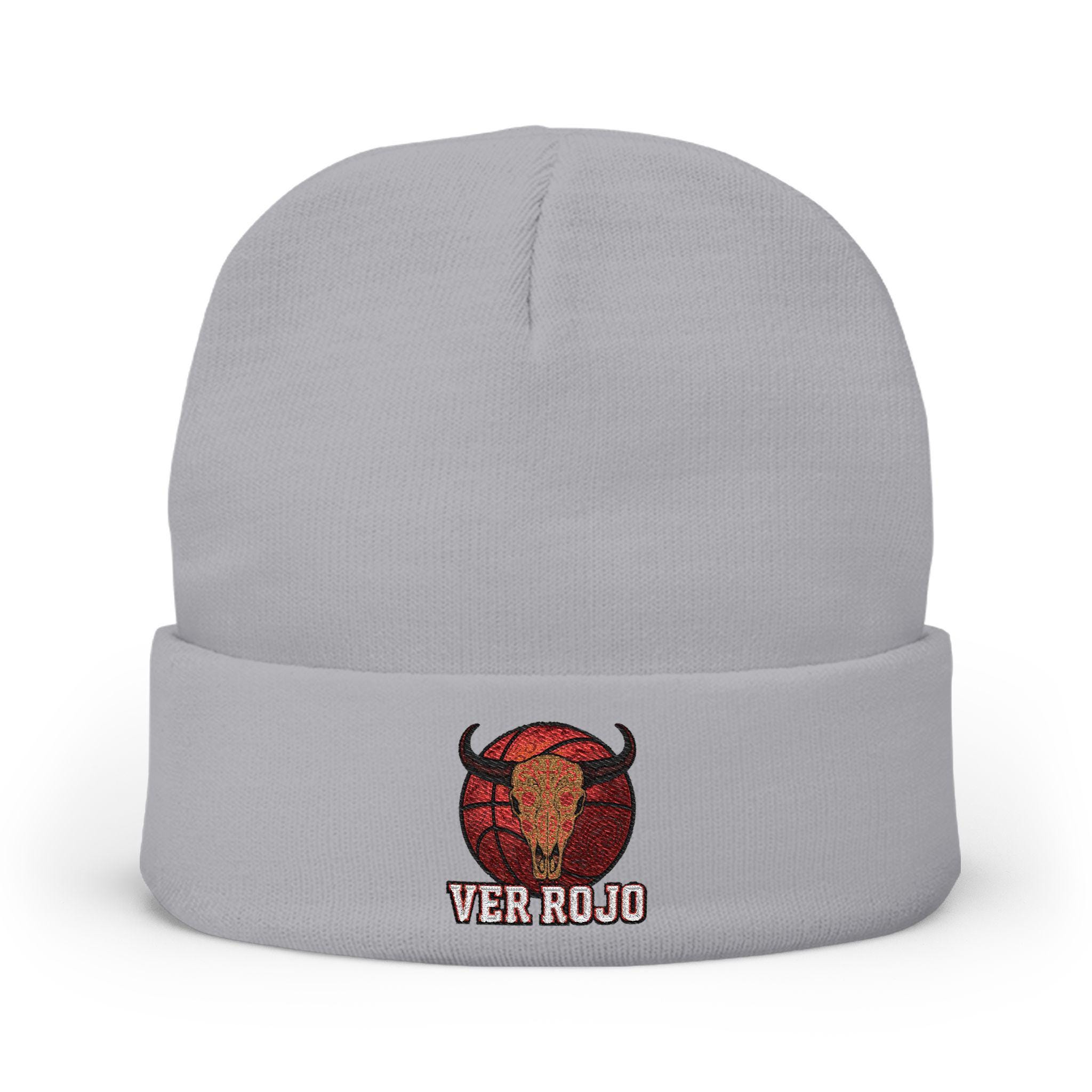 ver rojo beanie, red embroidered beanie, chicago streetwear hat, bull skull hat, red knit winter cap, unisex cotton beanie, custom embroidered hat, streetwear beanie, bold red beanie, mens embroidered beanie, skull design hat, cotton blend beanie, warm knit cap, chicago inspired fashion, beanie with attitude