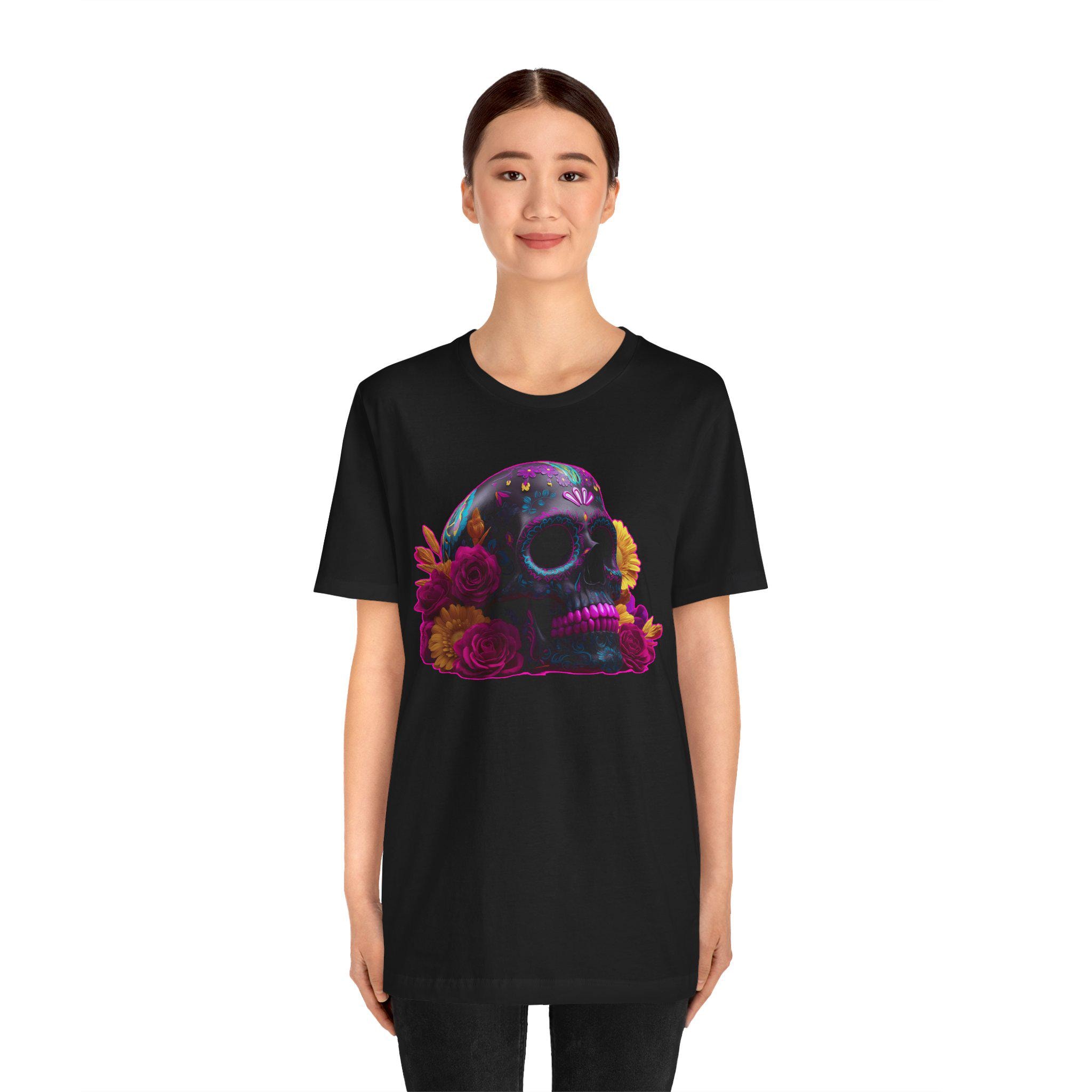 Perfect for Day of the Dead celebrations, art lovers, skull collectors, or anyone drawn to symbolic floral designs, this tee is made to be worn often and remembered.