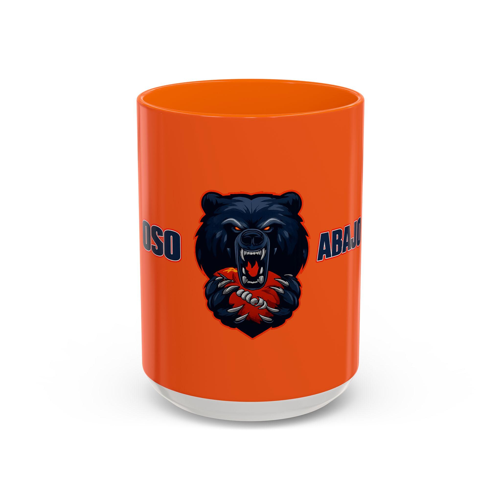 The deep navy exterior paired with a rich colored interior and handle makes the artwork pop, while the heavyweight ceramic build gives it a solid, satisfying feel in your hand. Whether you’re breaking down Sunday’s win, heading into work, or talking trash before the next kickoff, this mug delivers the message loud and clear: Oso Abajo.