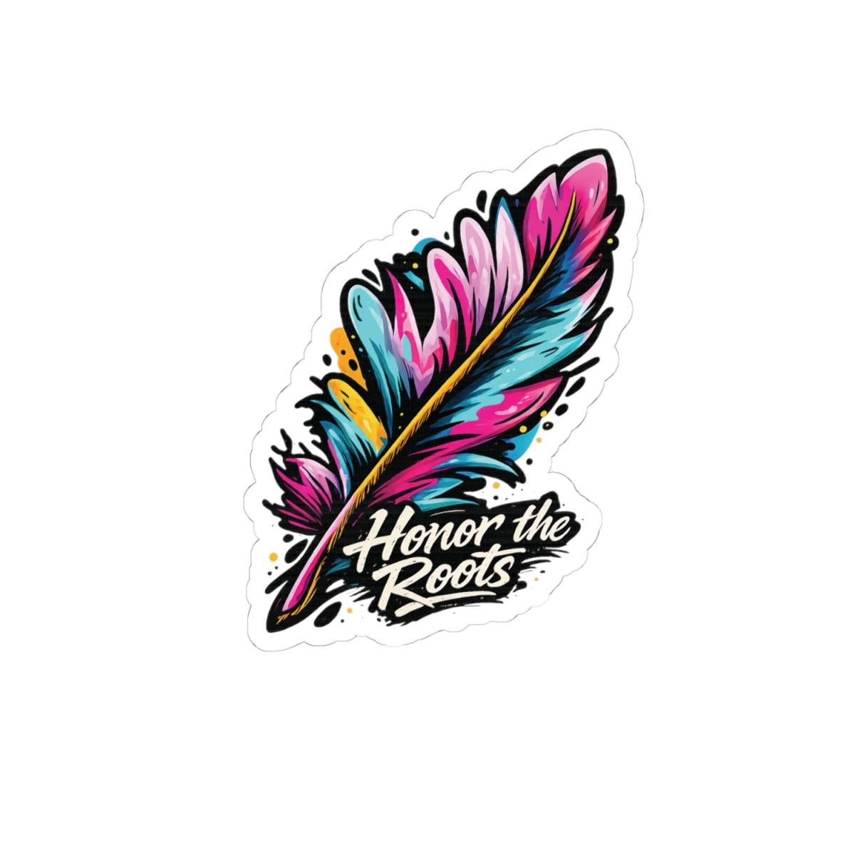Honor the Roots is a bold, hand-drawn feather design inspired by Indigenous heritage and the strength of Native cultures. This artwork blends vibrant color with a street-art aesthetic, creating a modern tribute that’s powerful, respectful, and made to stand out.