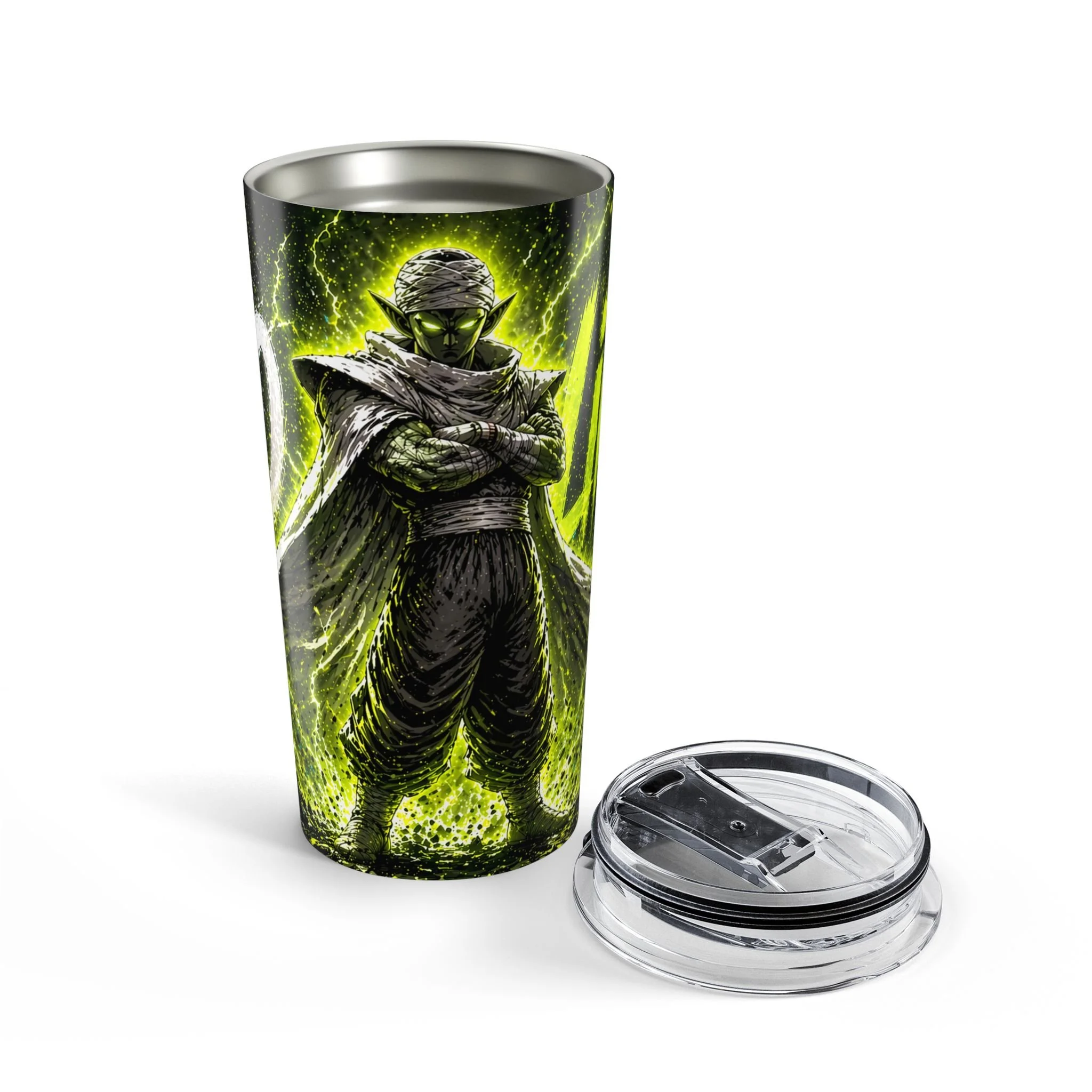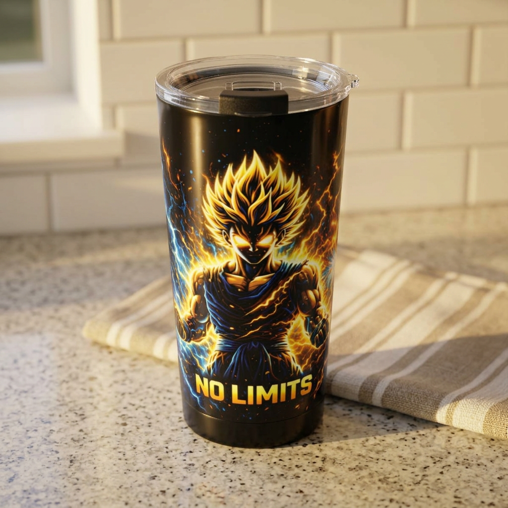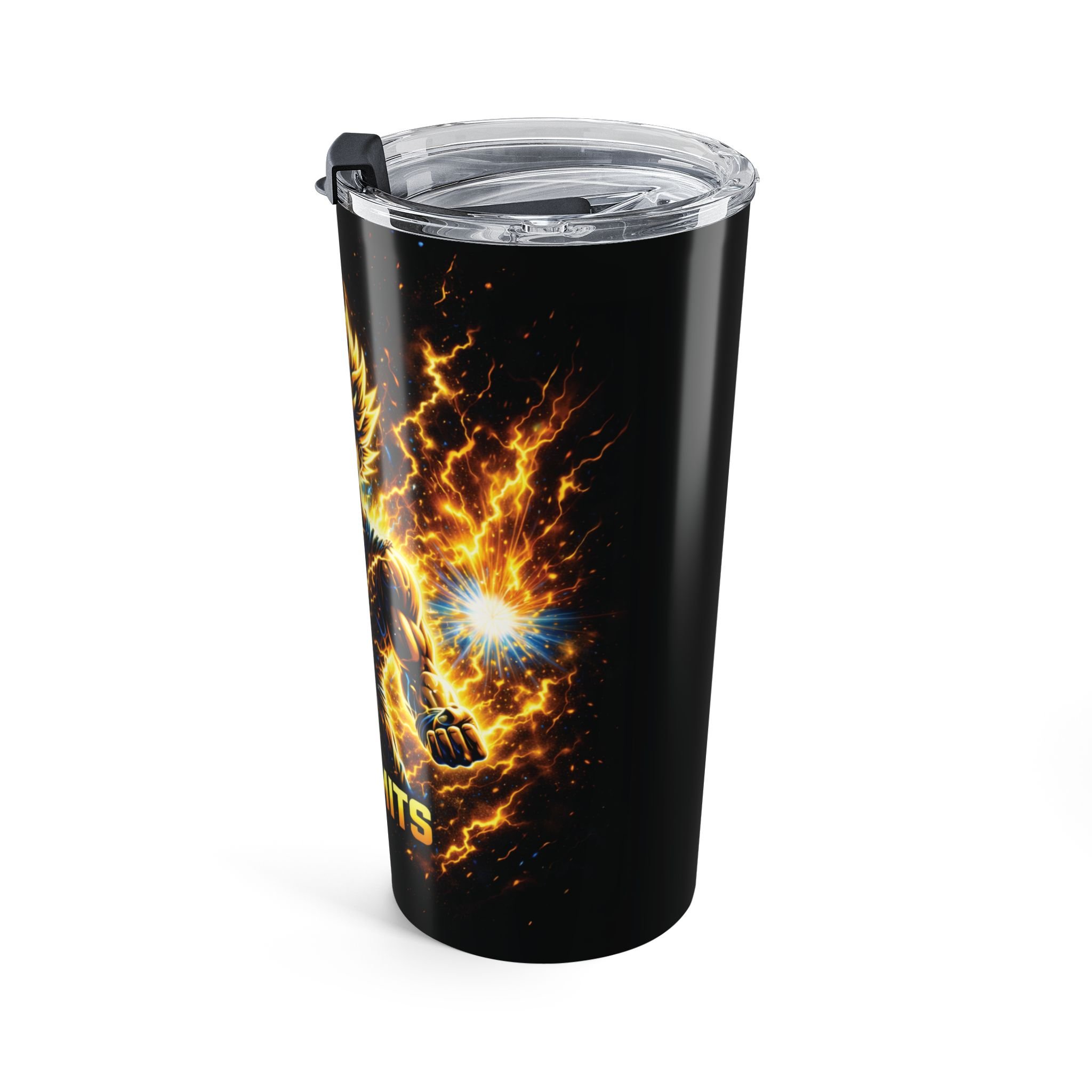 Gold Anime Energy Tumbler 20oz | NO LIMITS Power Aura Cup | Lightning Fighter Style Drinkware | Gym Anime Gift | Bold Graphic Travel Mug