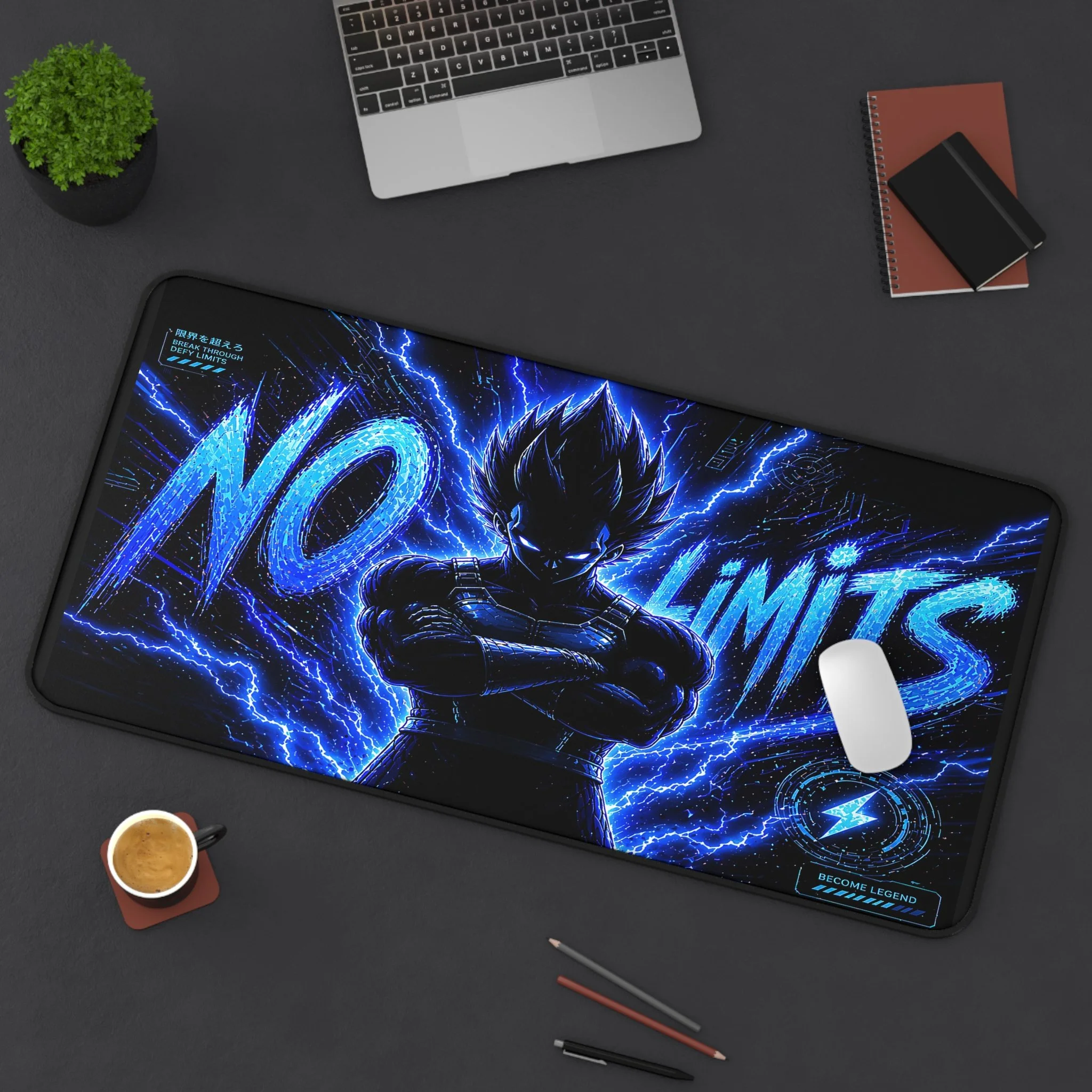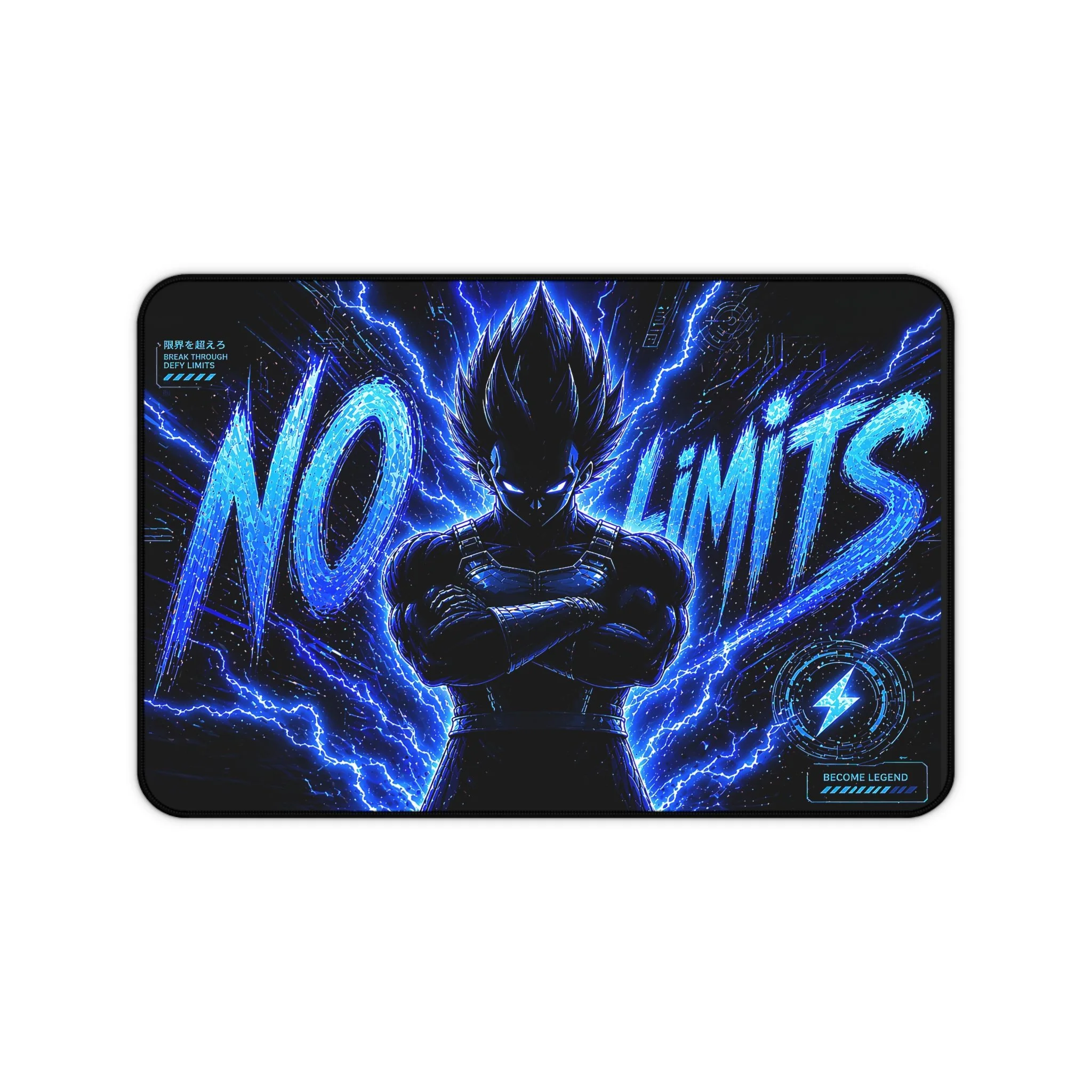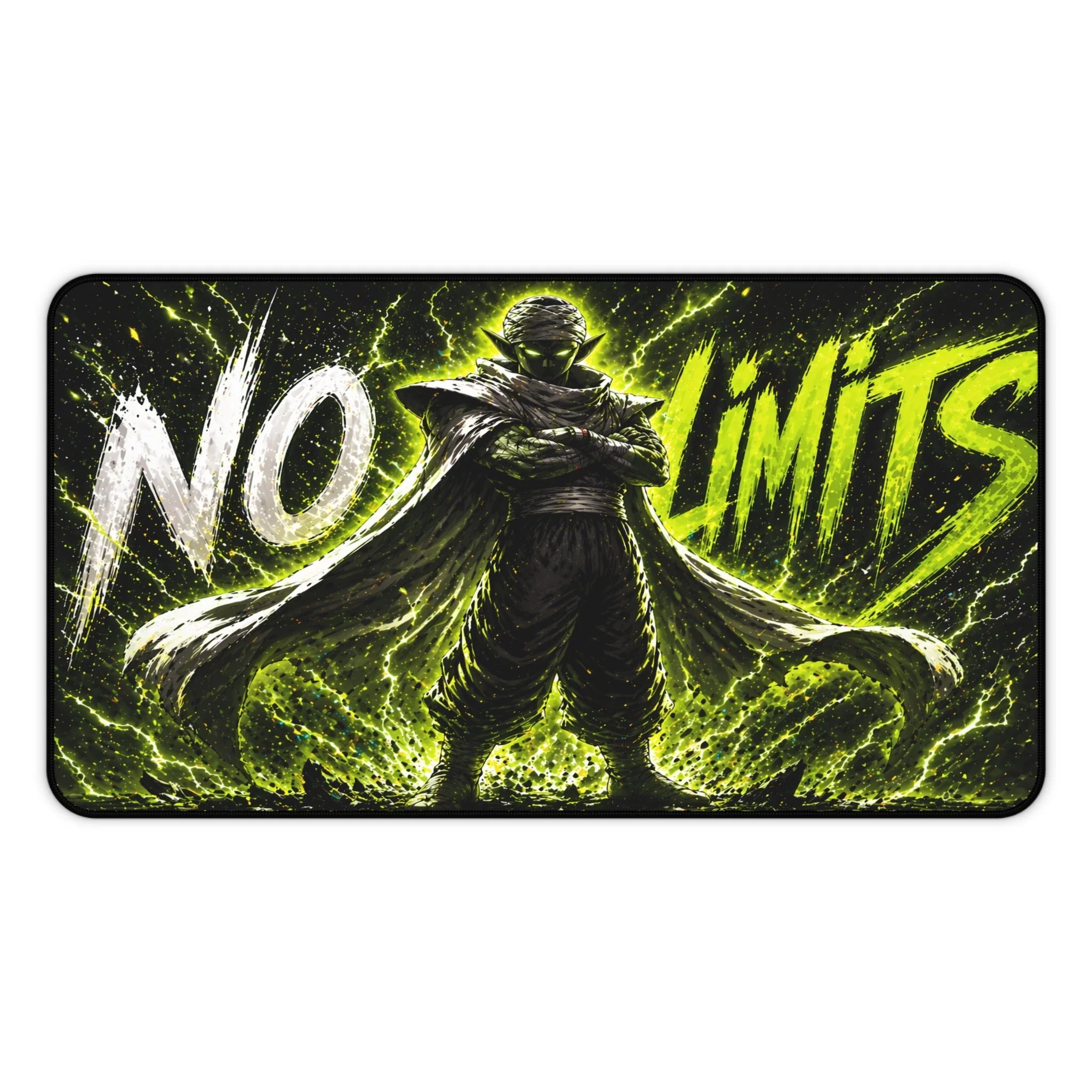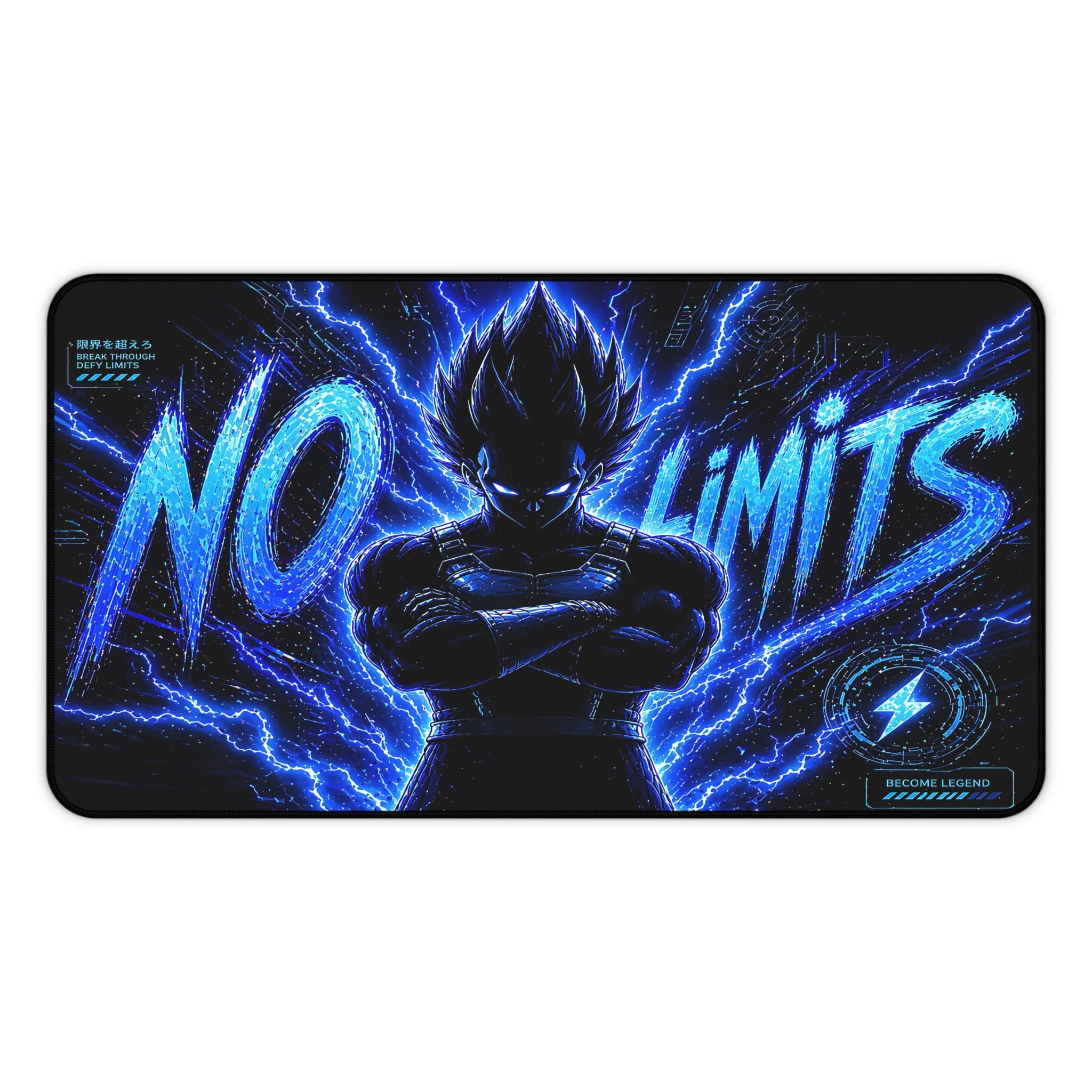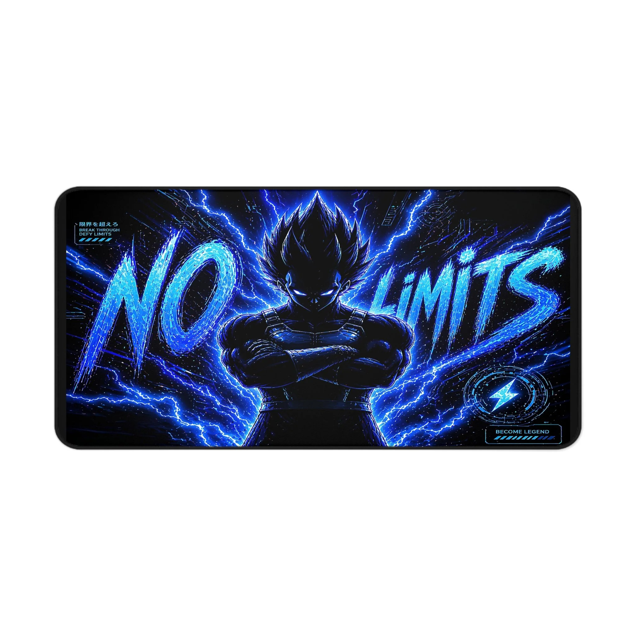Turn your setup into a high-voltage workspace with this bold NO LIMITS desk mat, featuring electrifying energy effects and a powerful shadowed fighter silhouette. Designed to stand out, this piece brings intensity, focus, and a sleek modern edge to any desk.