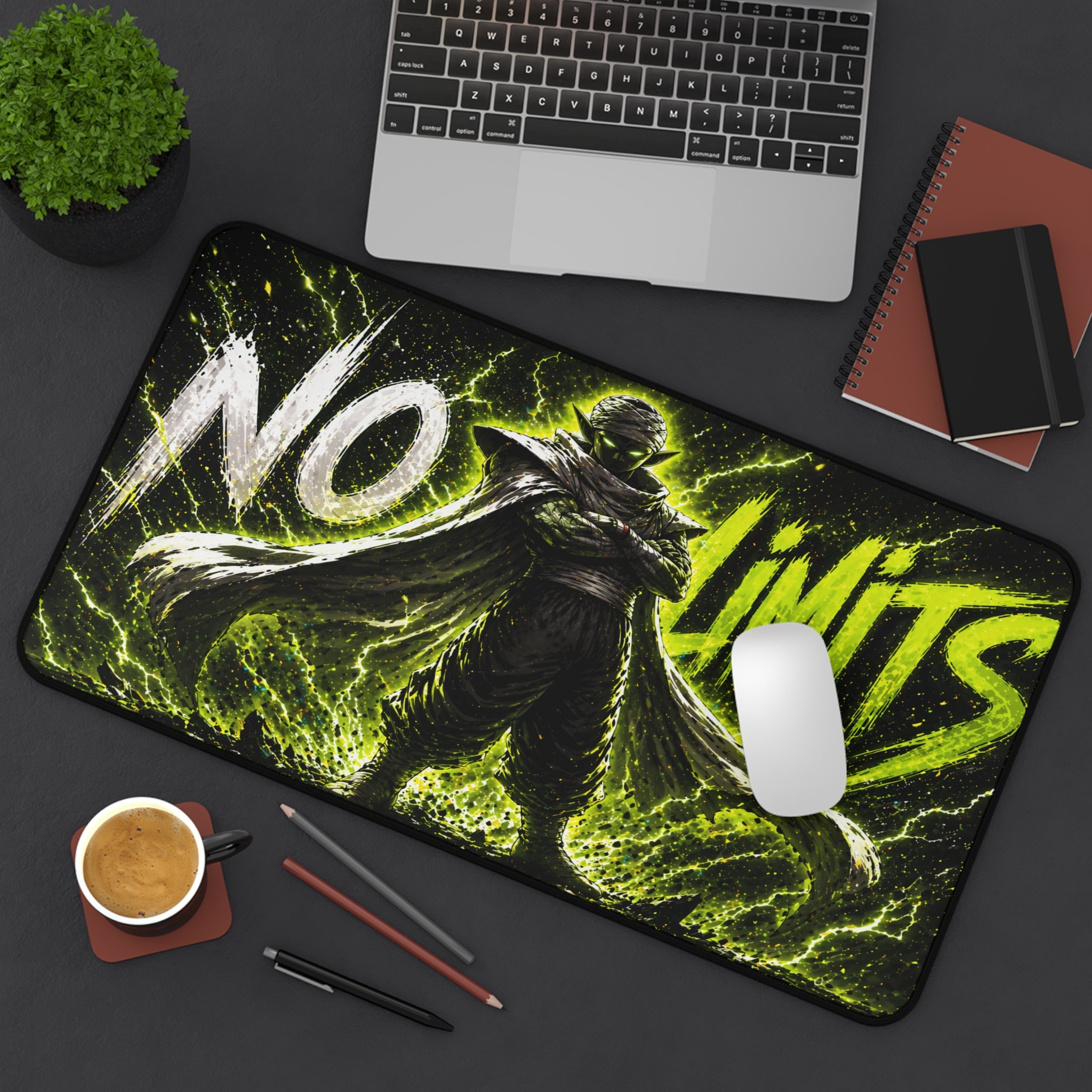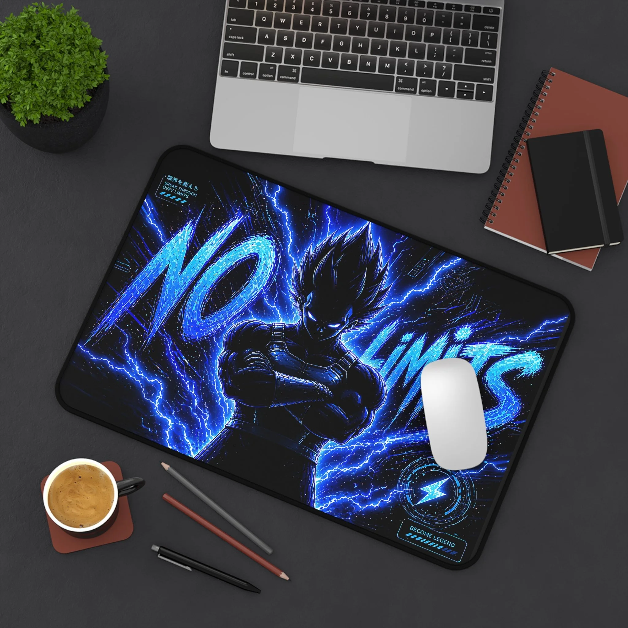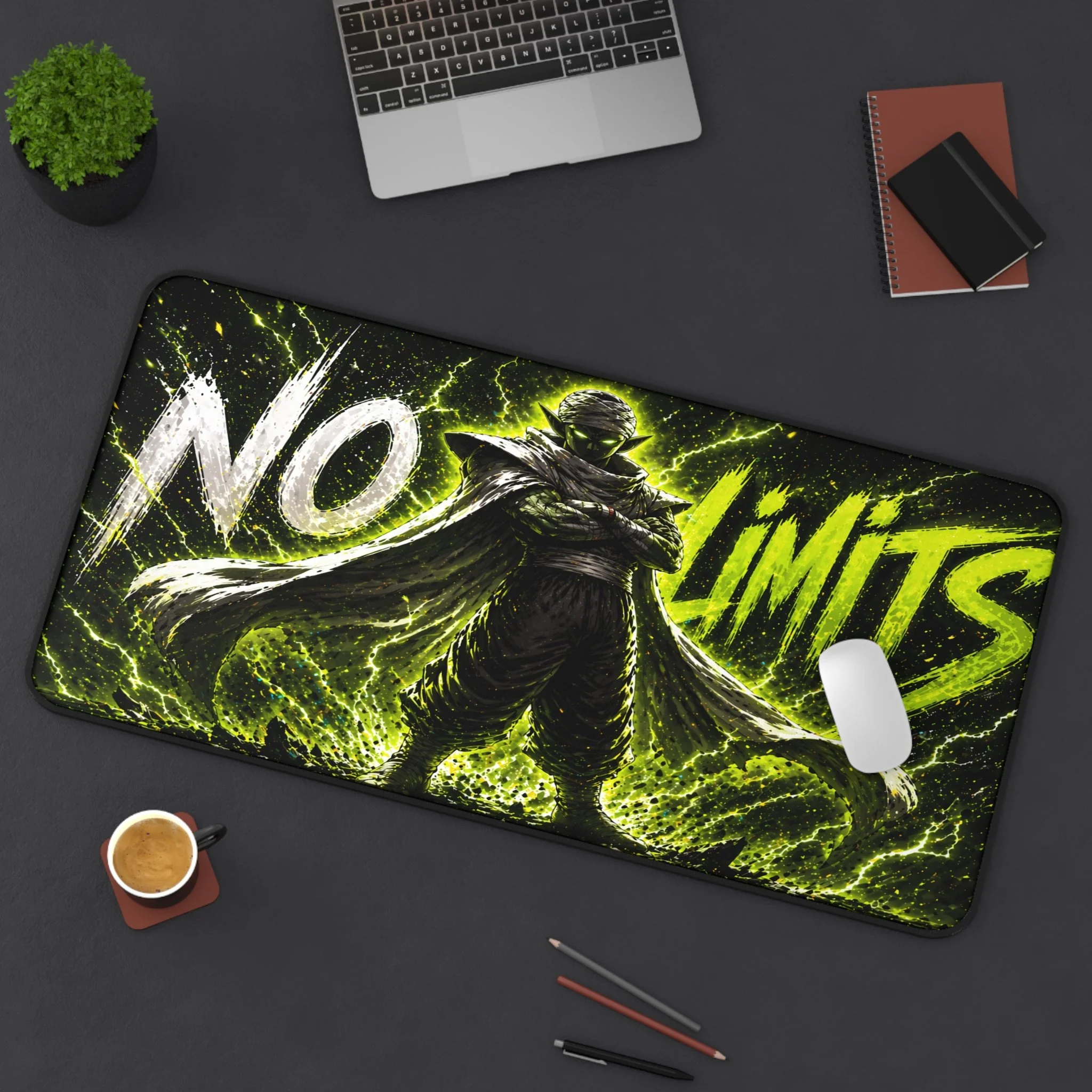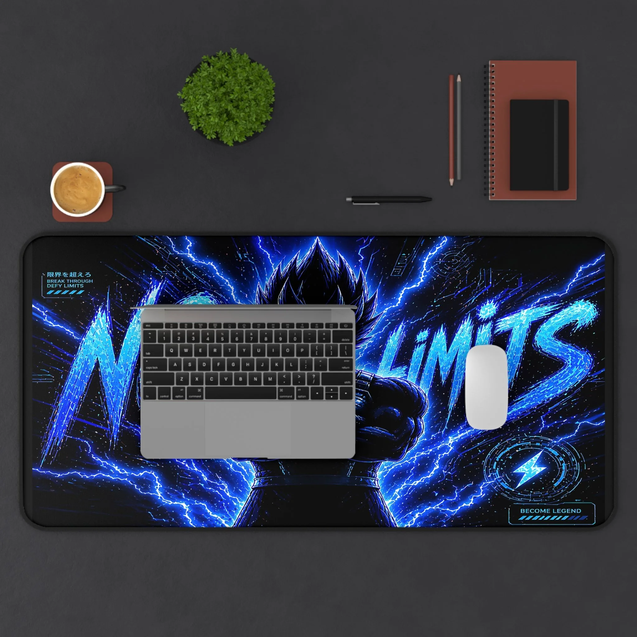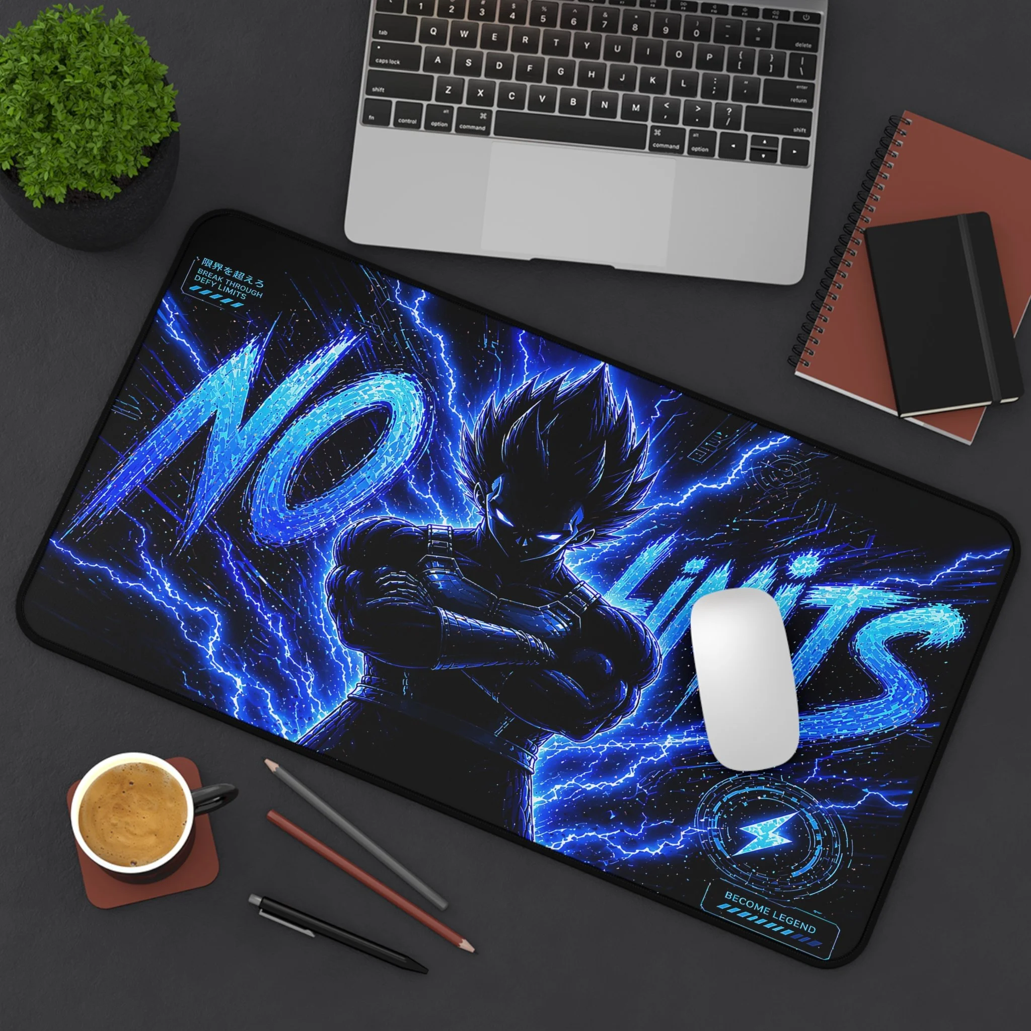 Turn your setup into a high-voltage workspace with this bold NO LIMITS desk mat, featuring electrifying energy effects and a powerful shadowed fighter silhouette. Designed to stand out, this piece brings intensity, focus, and a sleek modern edge to any desk.