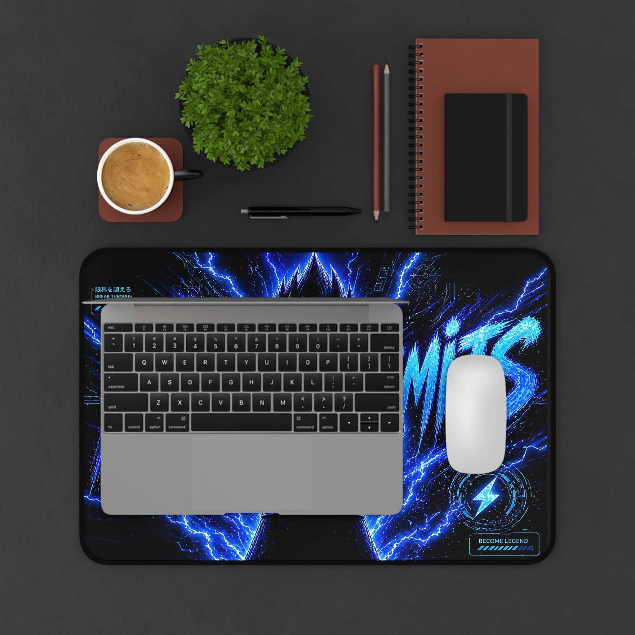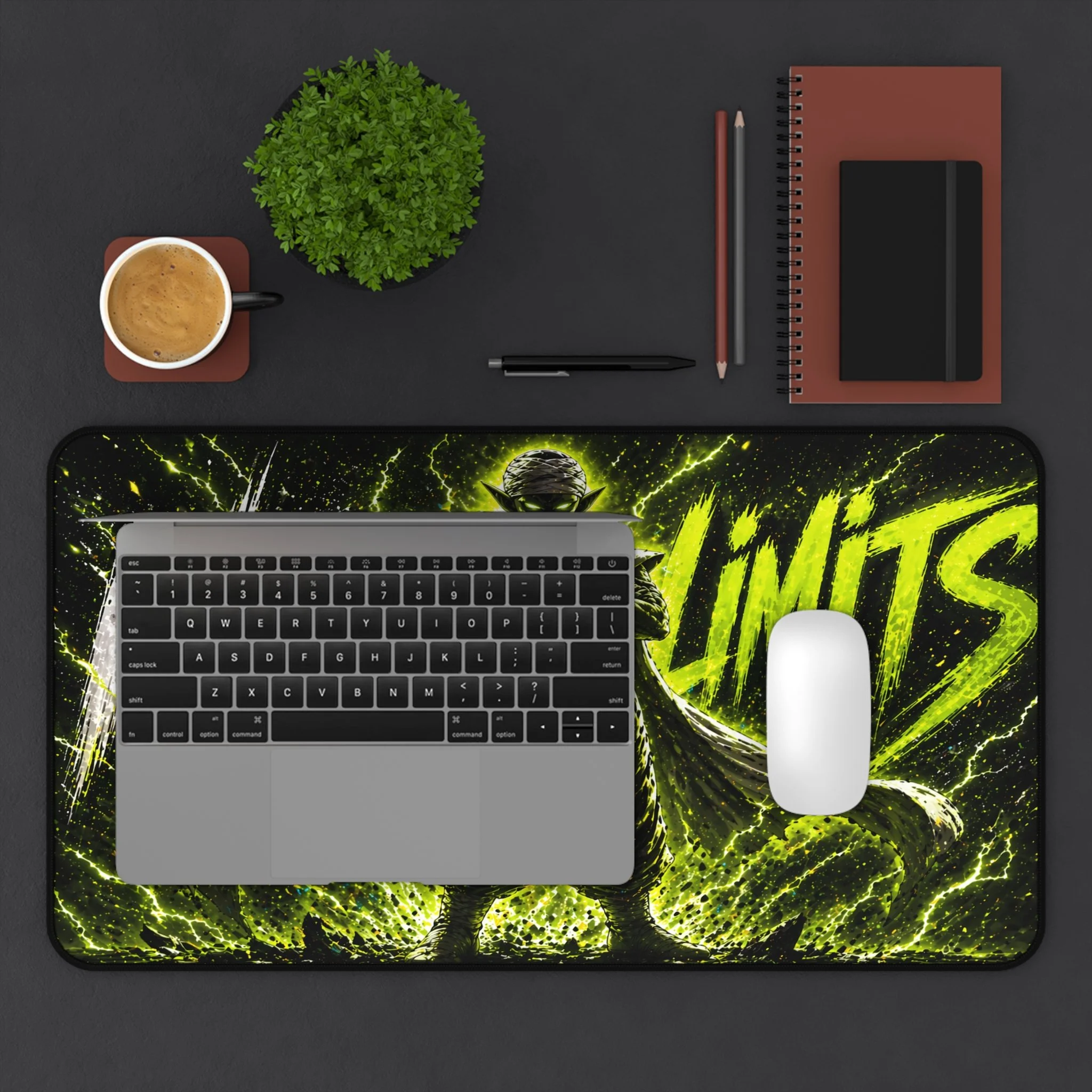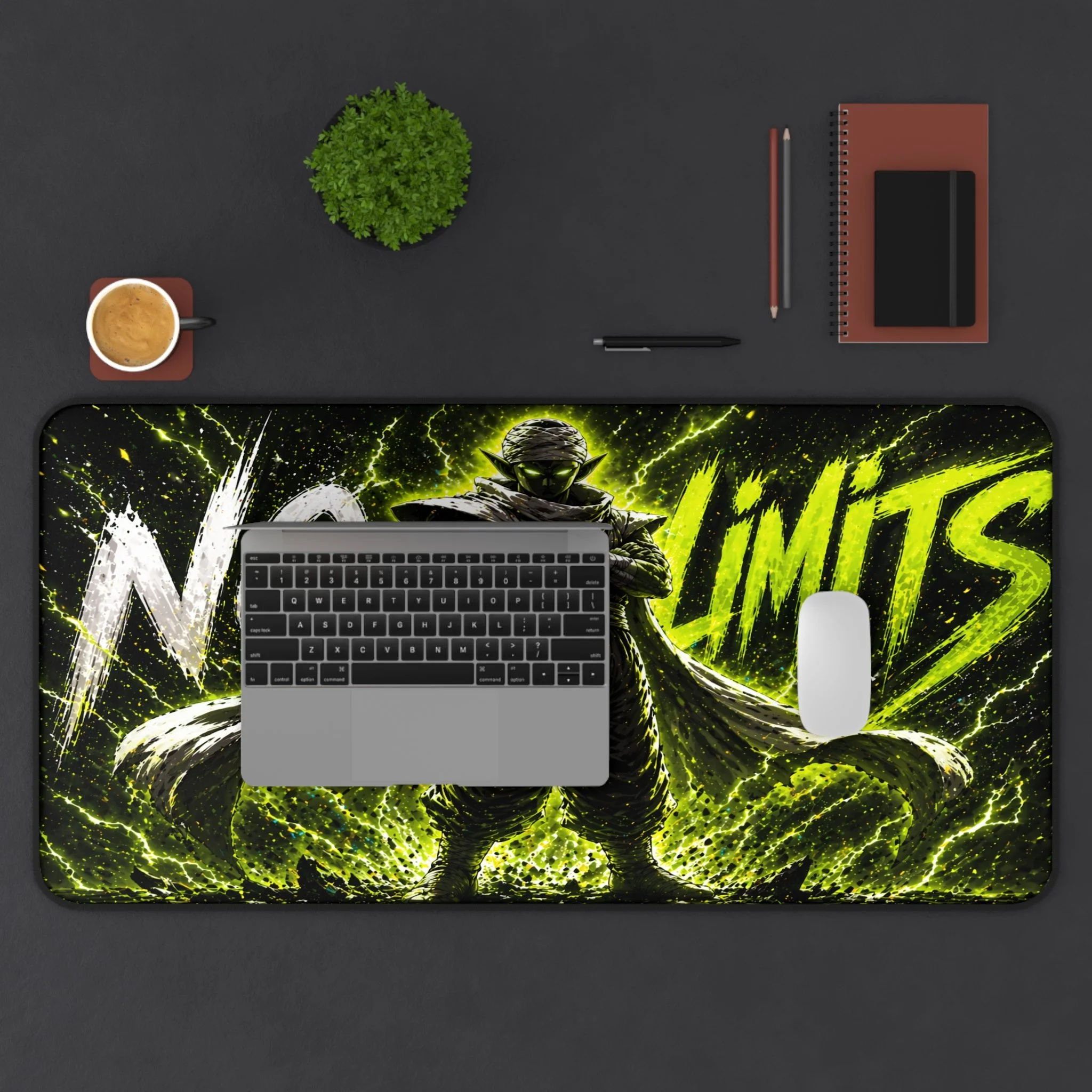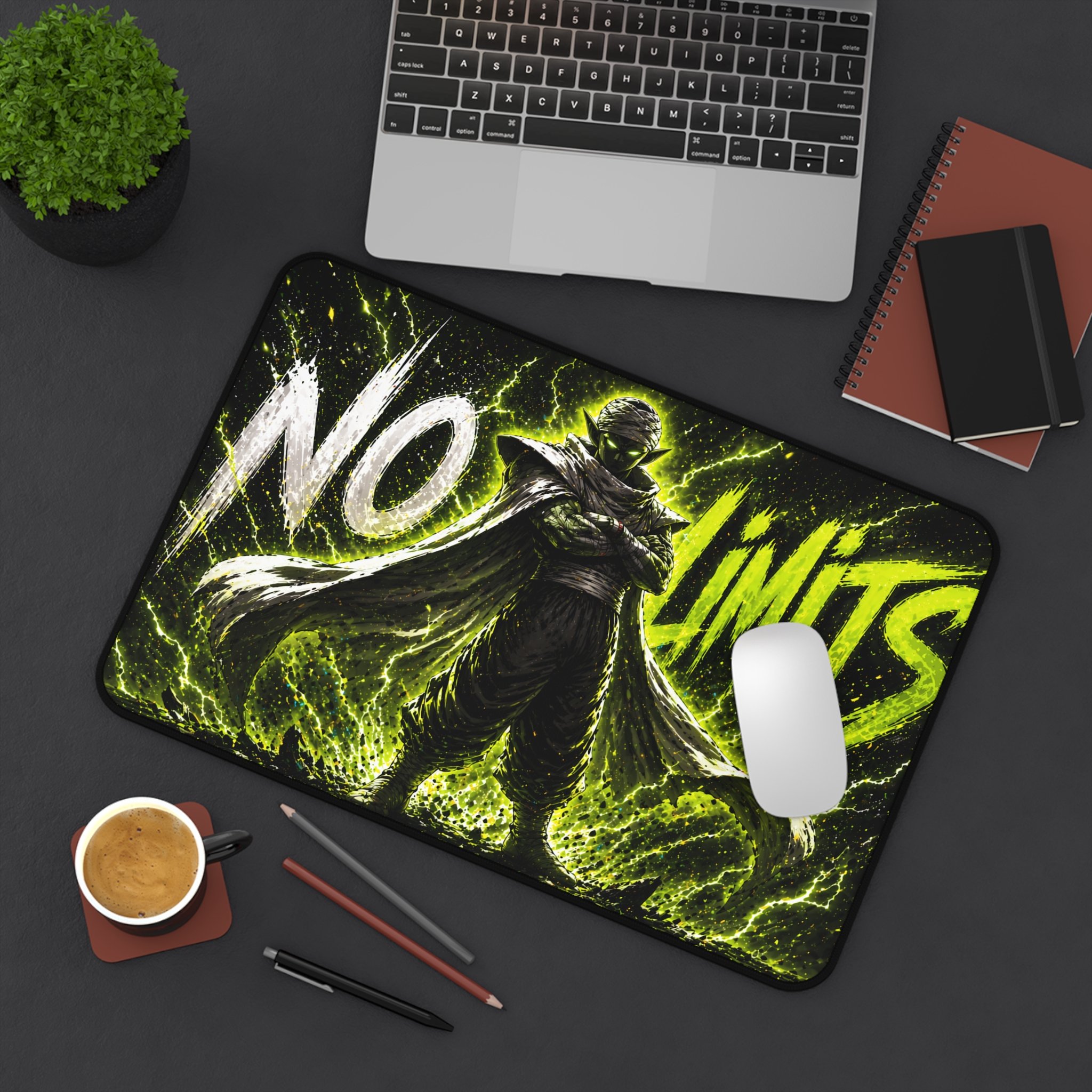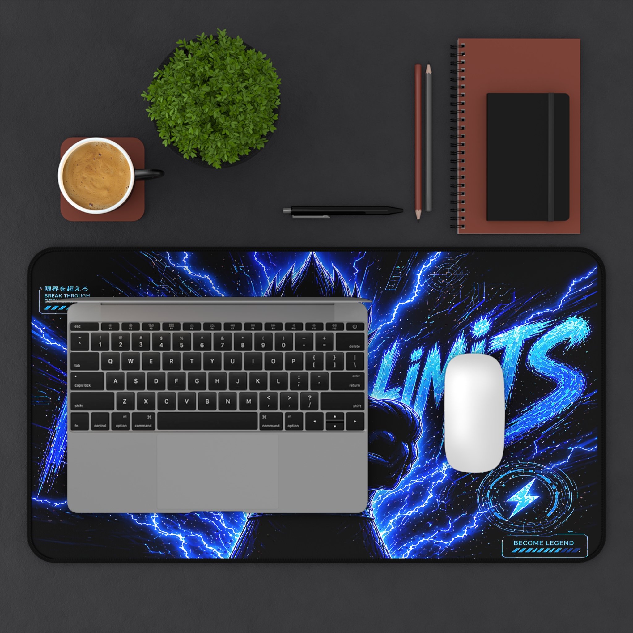 Turn your setup into a high-voltage workspace with this bold NO LIMITS desk mat, featuring electrifying energy effects and a powerful shadowed fighter silhouette. Designed to stand out, this piece brings intensity, focus, and a sleek modern edge to any desk.