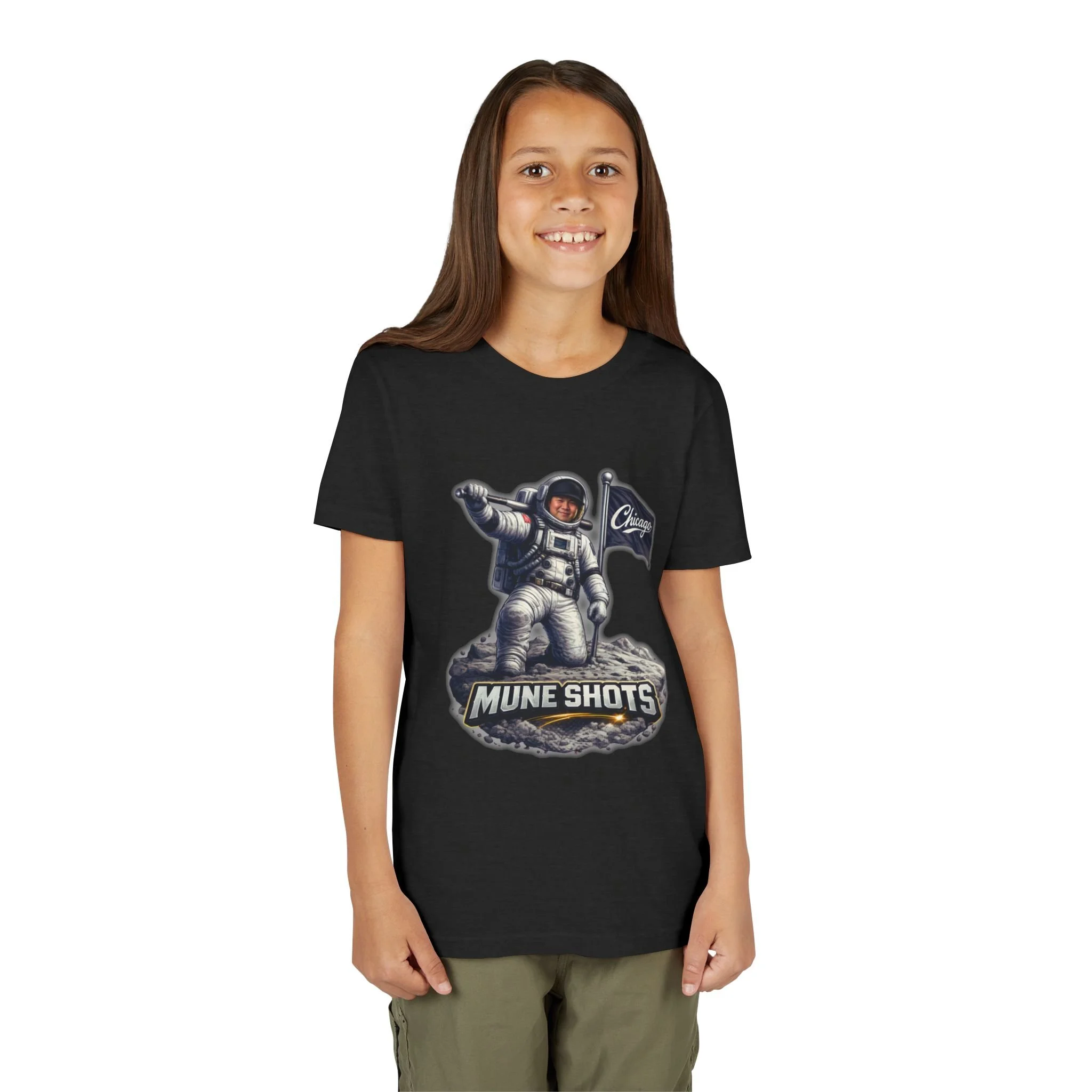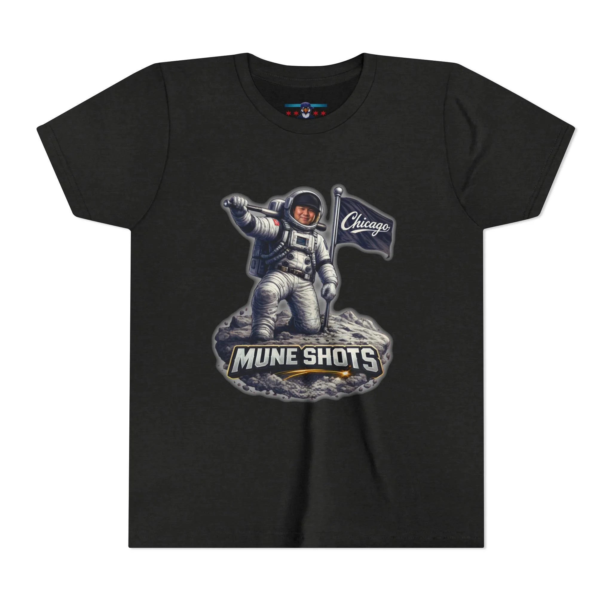 Mune Shots Youth Shirt – Chicago Baseball Astronaut Kids Tee, Power Hitter Graphic, Bella Canvas Youth T-Shirt